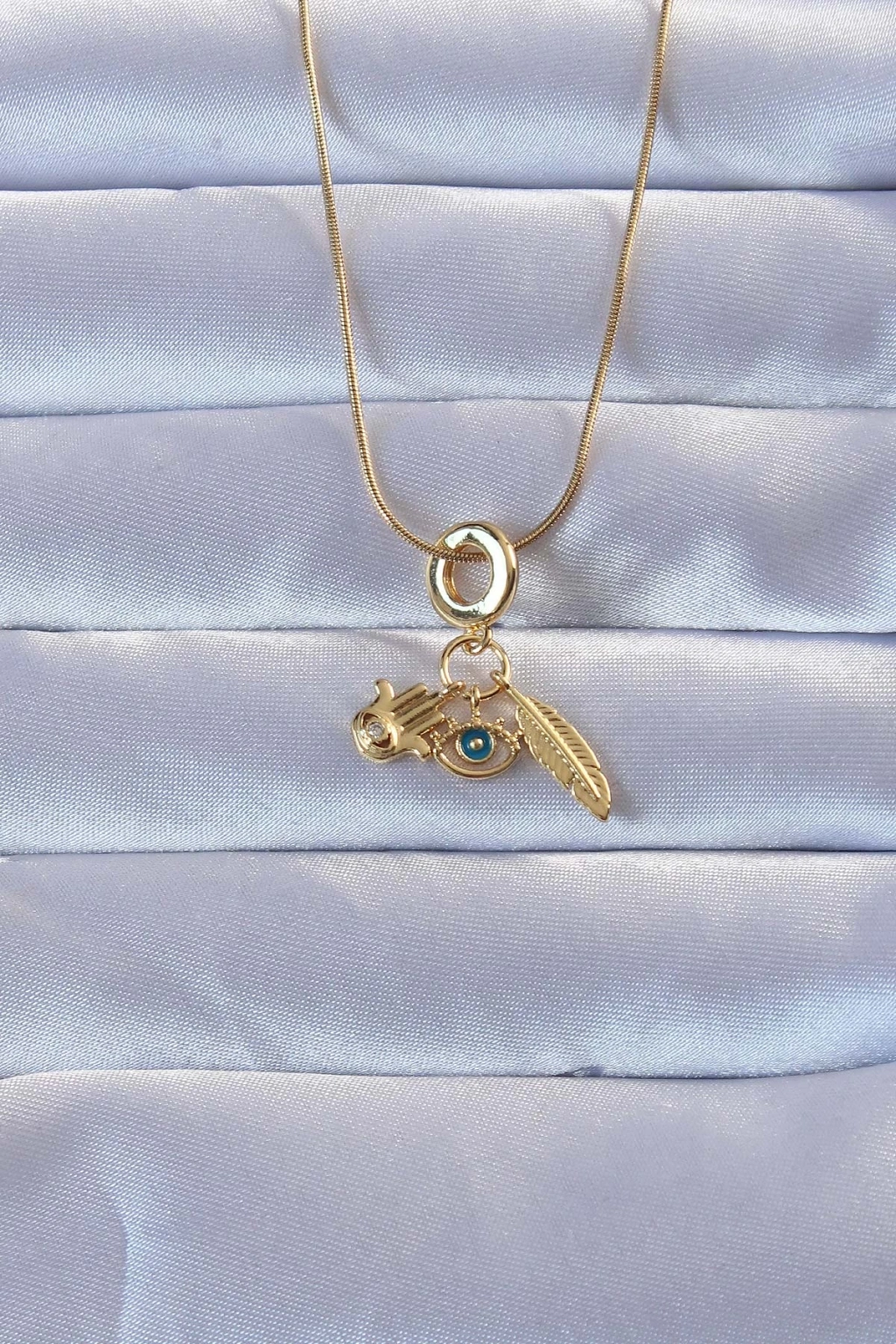 ÇOK SATAN 316L Altın Renk Zirkon Taşlı Fatma Ana Eli Yapraklı Kolye