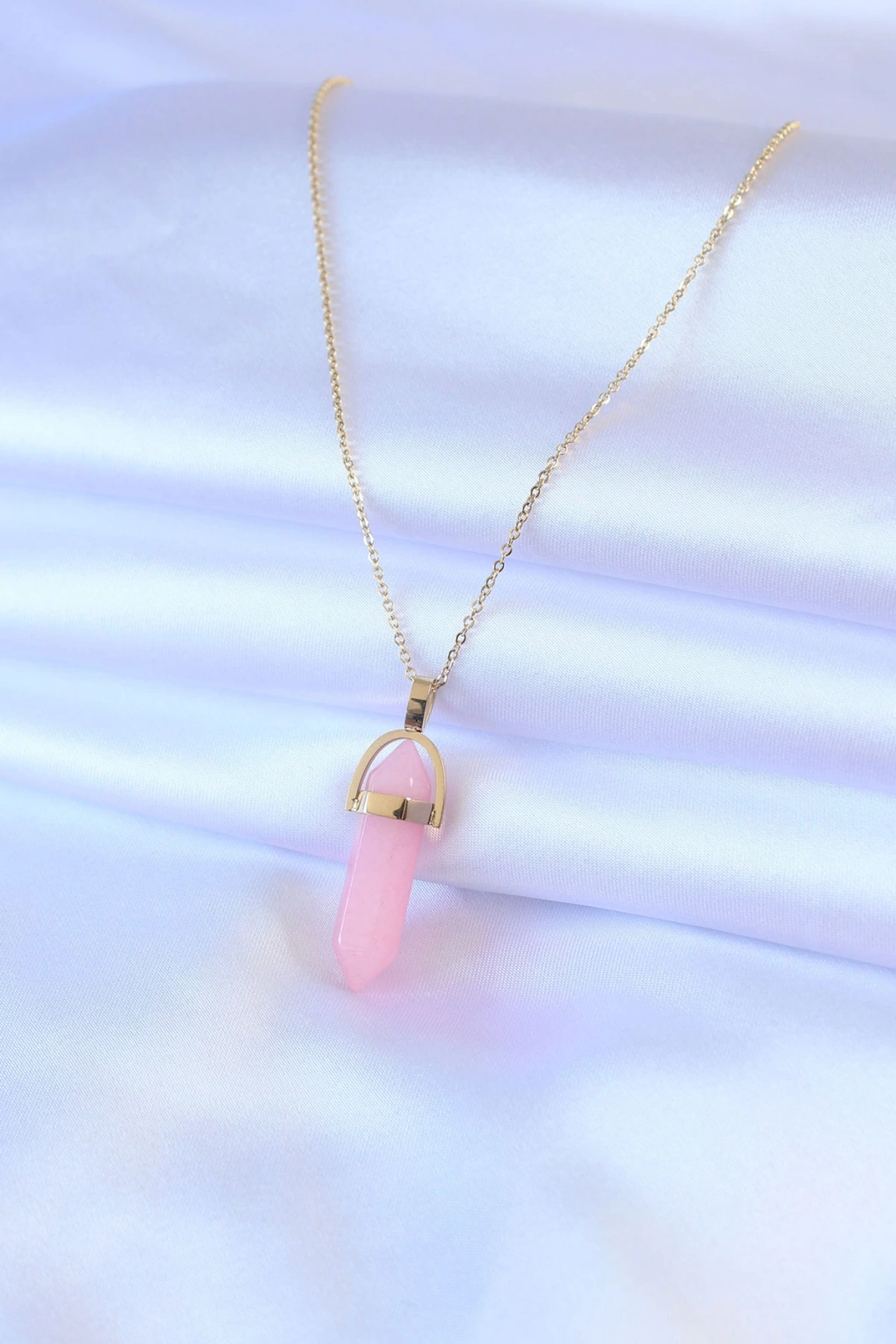 ÇOK SATAN 316L Çelik Gold Renk Kristal Pembe Taş Model Kadın kolye