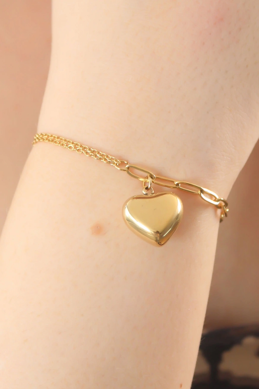 ÇOK SATAN 316L Çelik Gold Renk Zincir Model Kalp Figür Kadın Bileklik