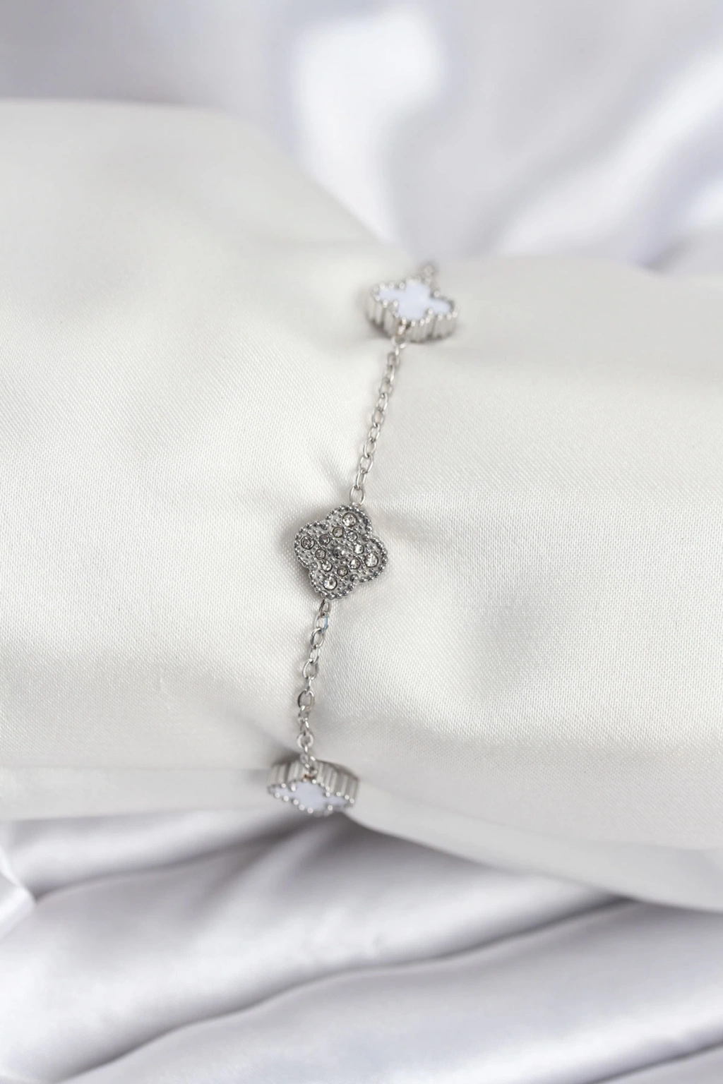 ÇOK SATAN 316L Çelik Gümüş Renk Beyaz ve Zirkon Taşlı Baby Boy Yonca Kadın Bileklik