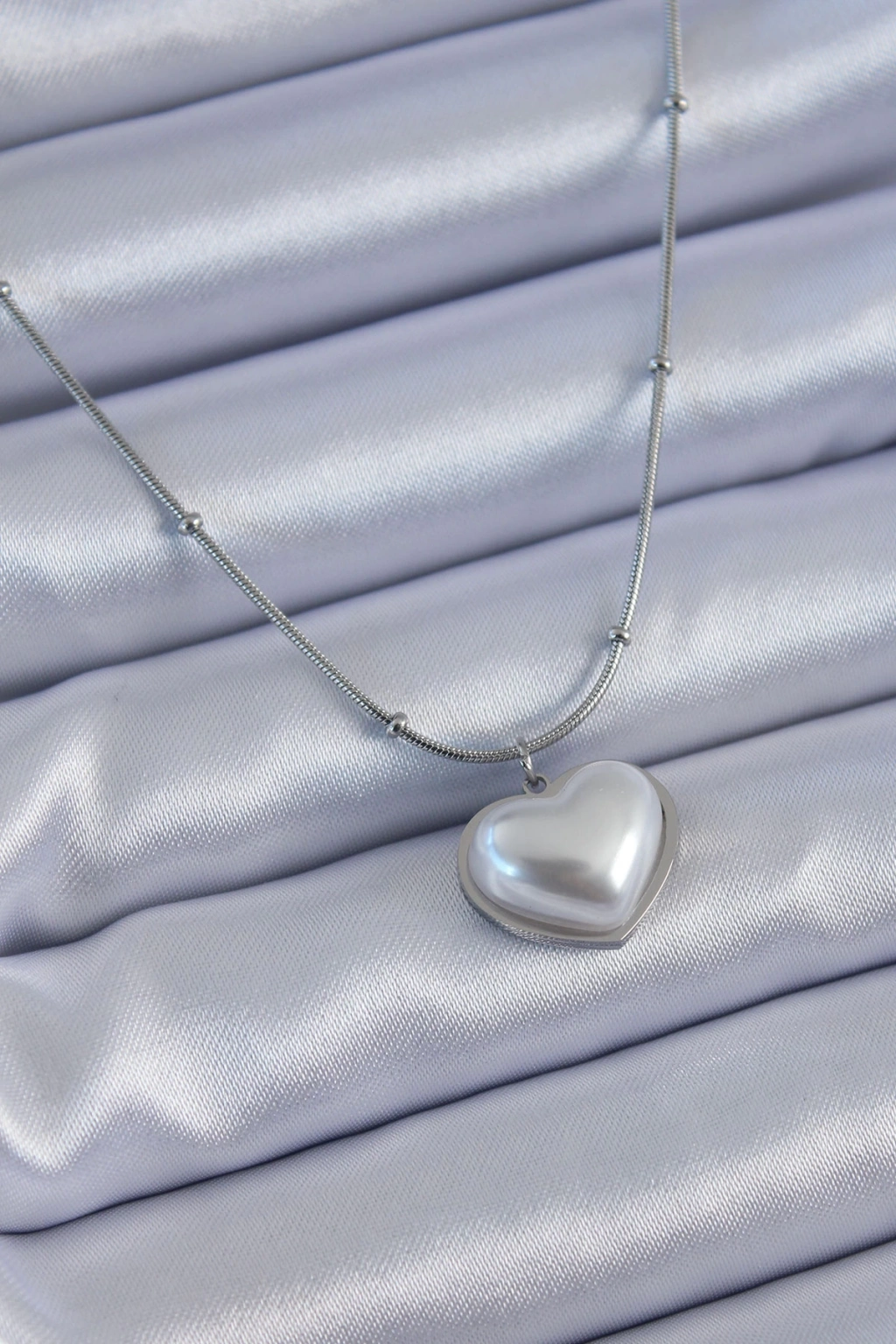 ÇOK SATAN 316L Çelik Gümüş Renk İncili Kalp Model Minimal Top Detay Kadın Kolye
