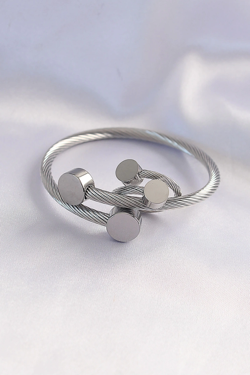 ÇOK SATAN 316L Çelik Gümüş Renk Oval Aksesuarlı Burgu Model Bileklik ve Yüzük Kombini