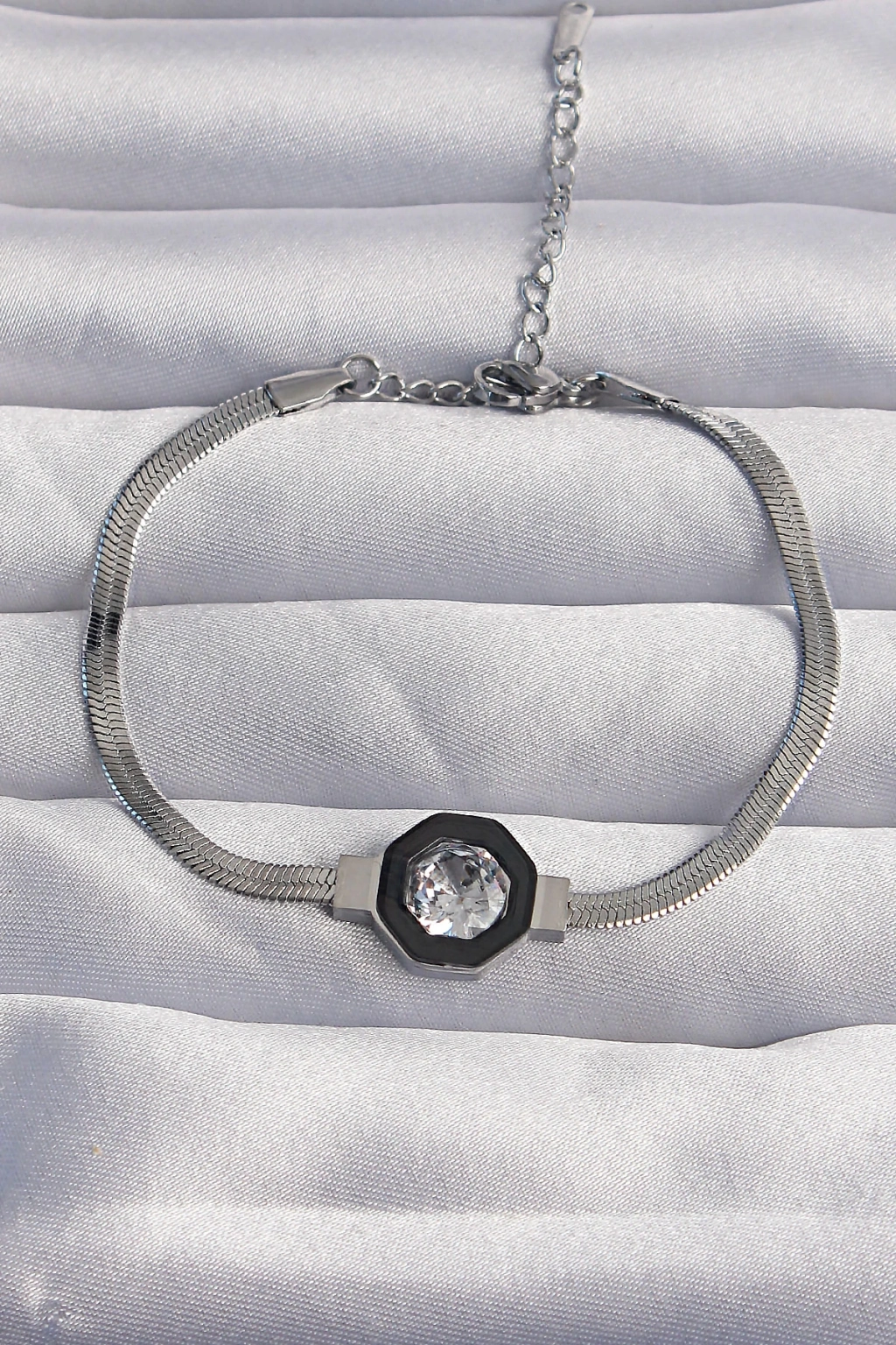 ÇOK SATAN 316L Çelik Gümüş Renk Zirkon Taşlı Mineli İtalyan Zincir Serenay Bileklik