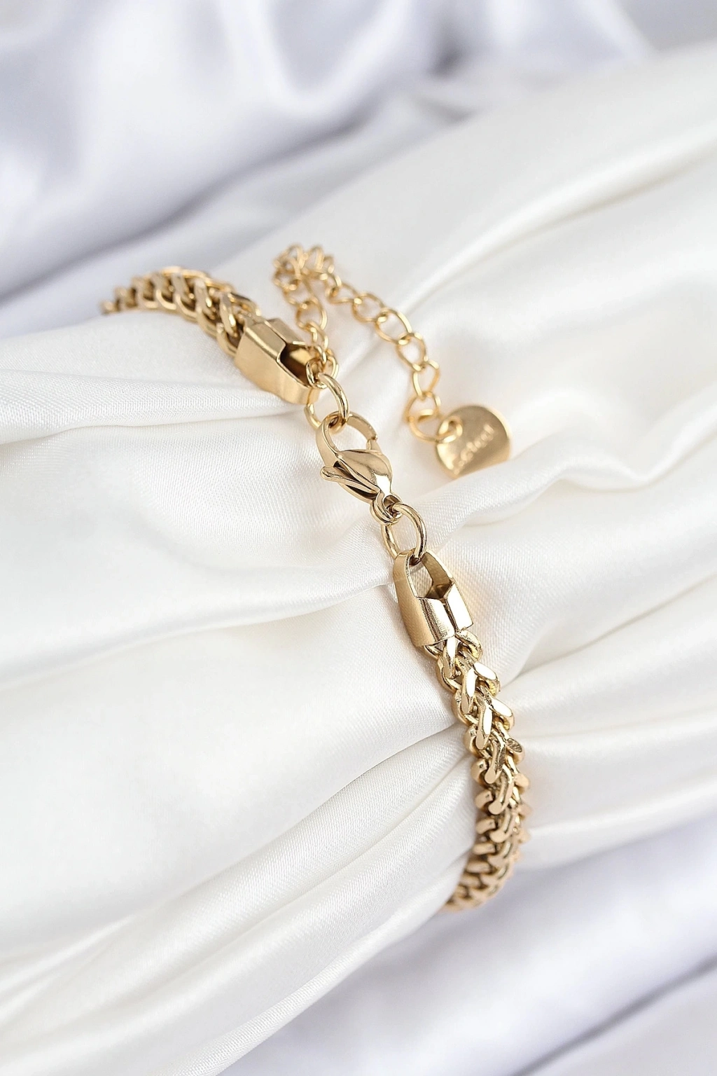 316L Çelik Örgü Zincir Model Gold Renk Kadın Bileklik