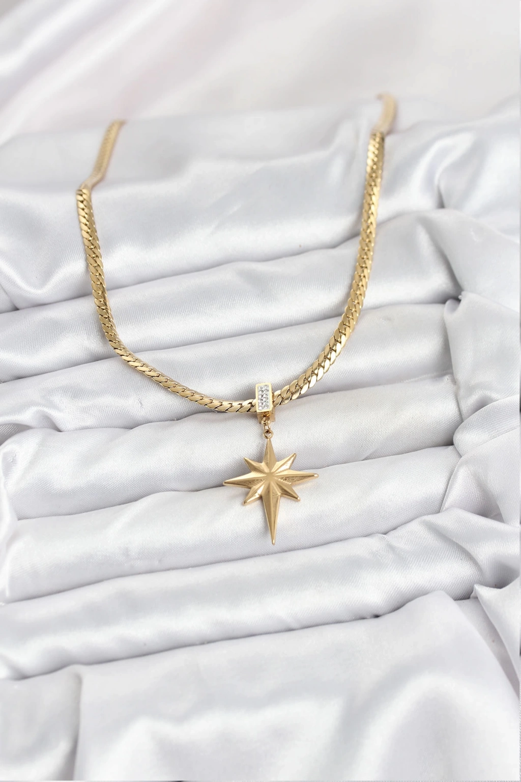 ÇOK SATAN 316L Çelik Zincir Gold Renk Kutup Yıldızı Model Kadın Kolye
