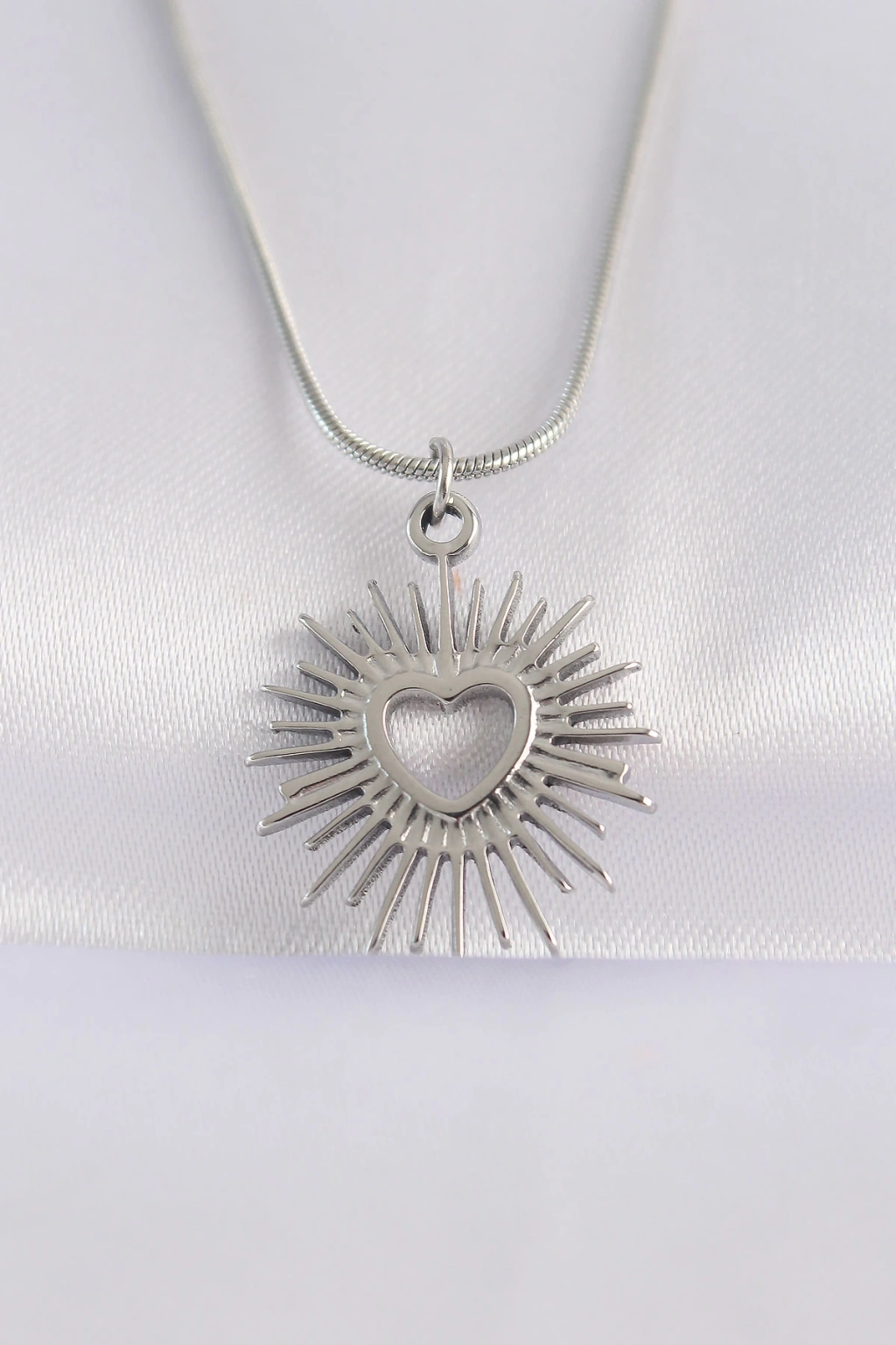 ÇOK SATAN 316L Çelik Zincir Gümüş Renk Kalp Güneşi Tasarımlı Kolye