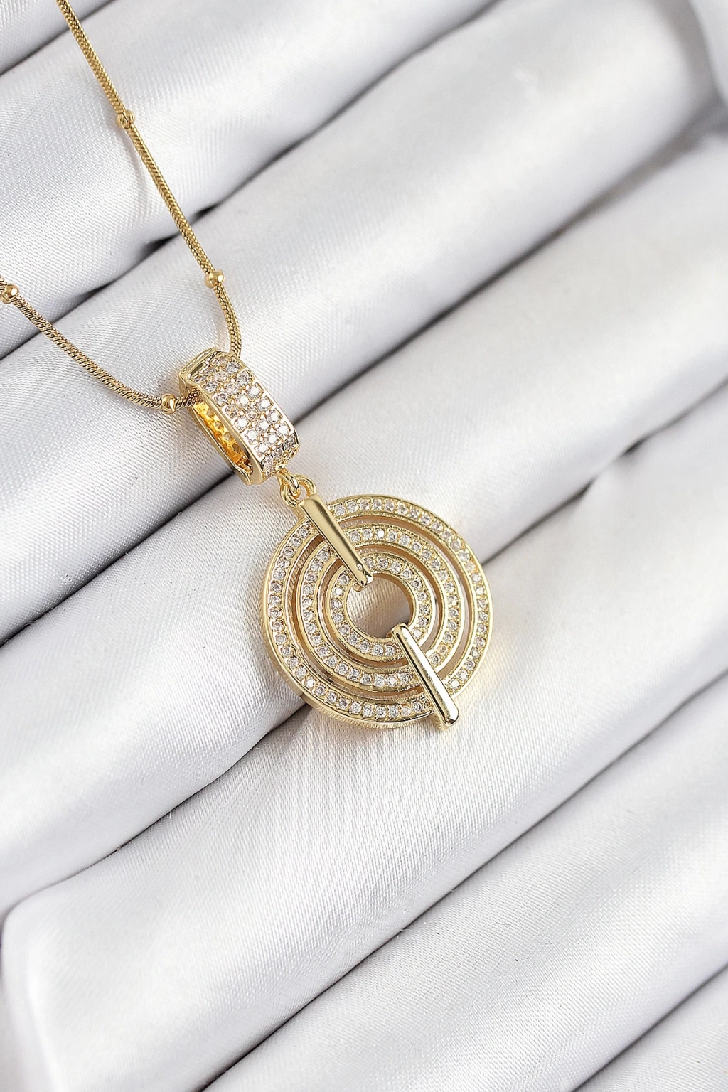 ÇOK SATAN 316L Çelik Zincir Gold Renk Zirkon Taşlı Sarmal Model Kadın Kolye