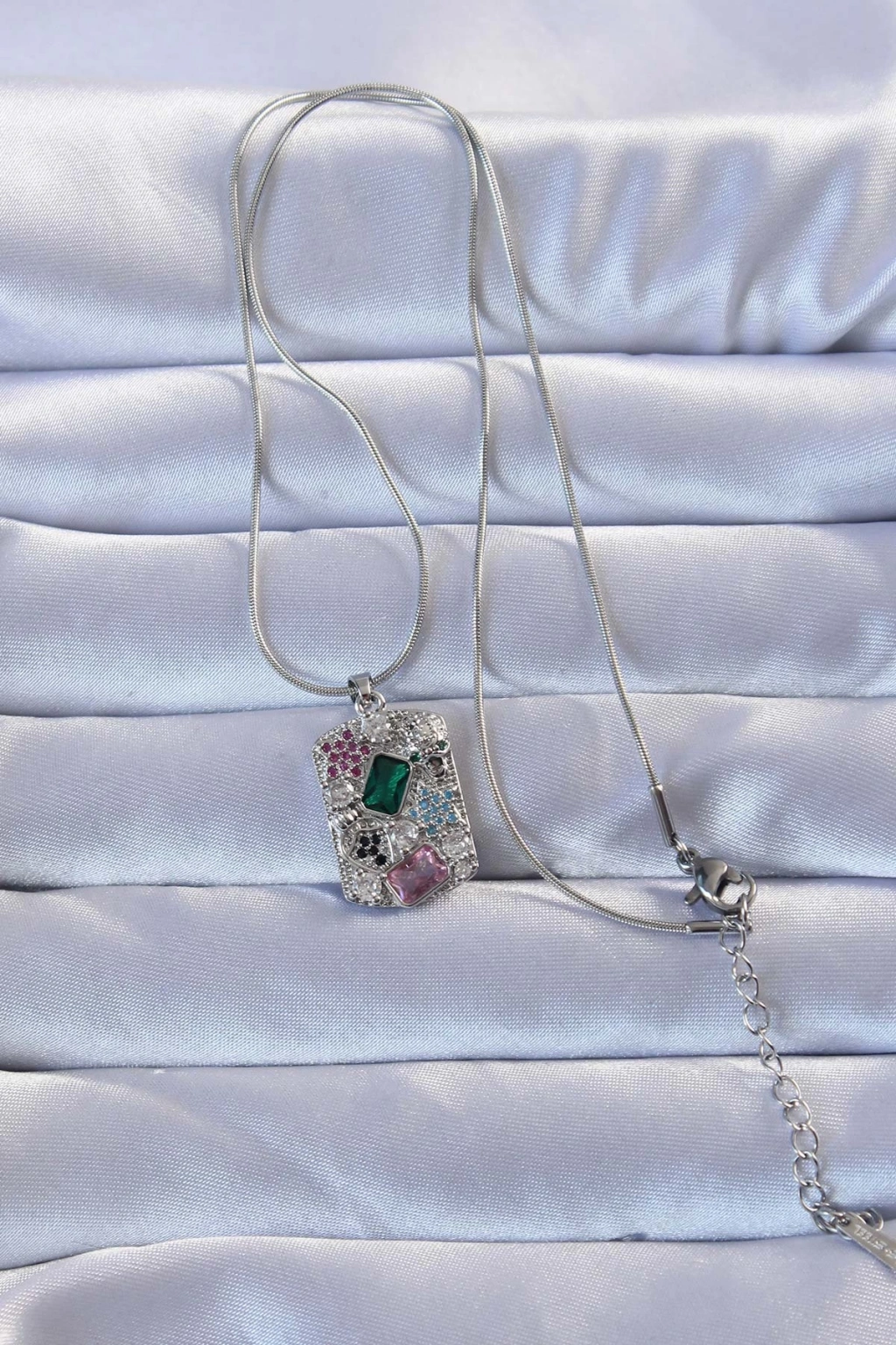 ÇOK SATAN 316L Gümüş Renk Çok Renkli Zirkon Taşlı Vintage Kolye