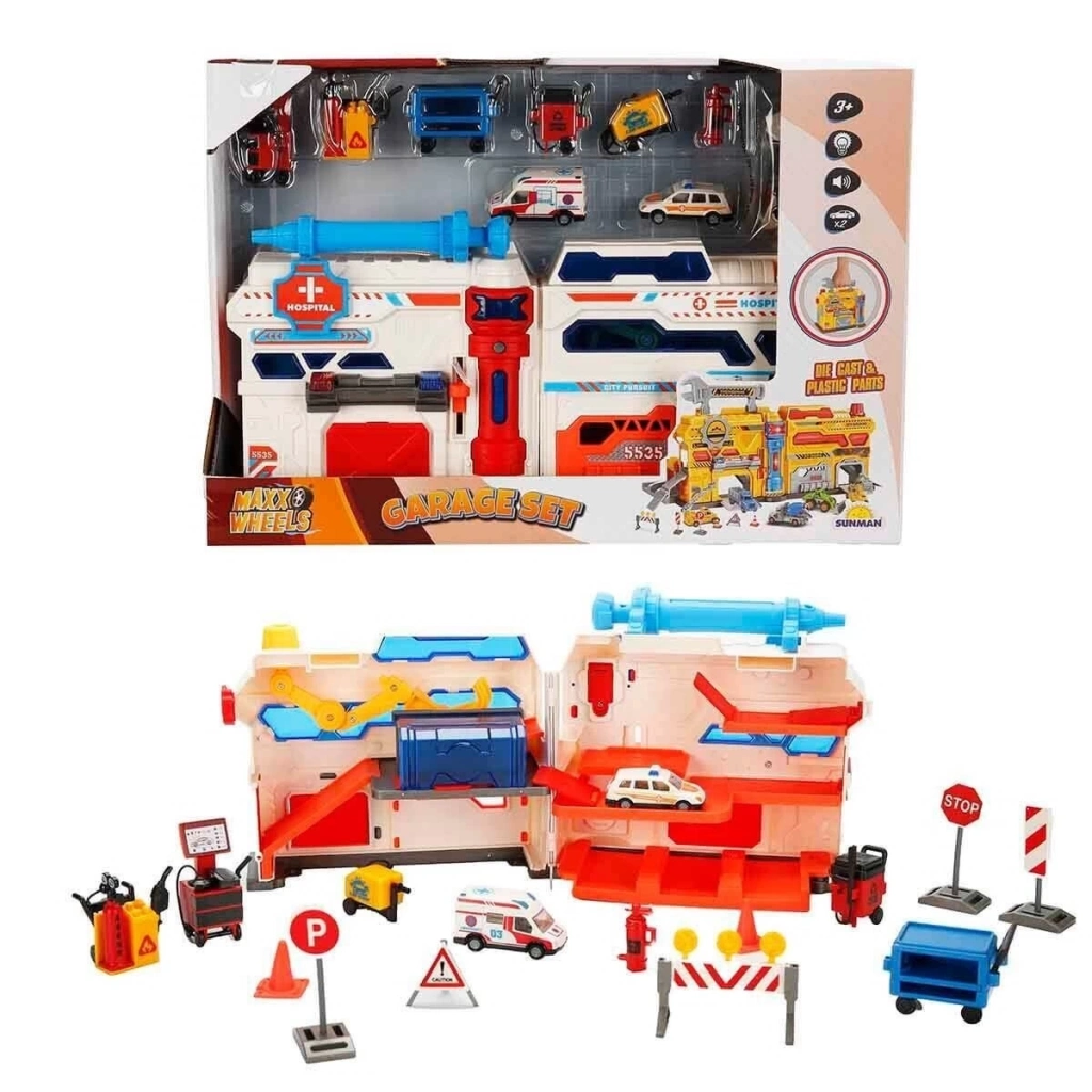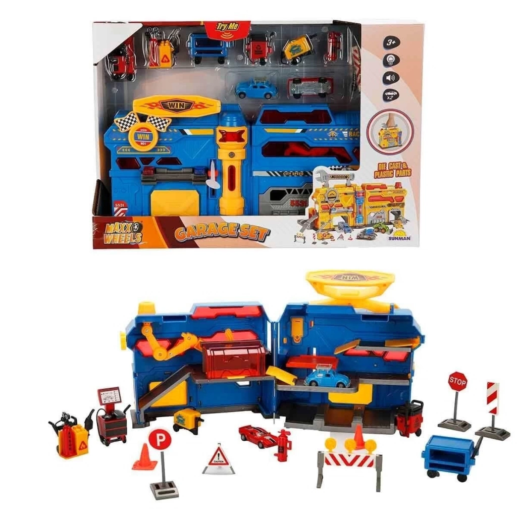 • 4539 Maxx Wheels Sesli ve Işıklı Garaj Seti İnşaat Garajı -Sunman