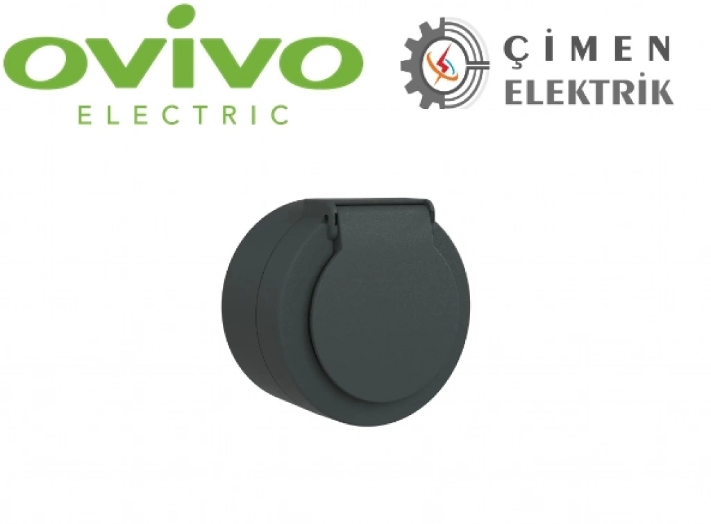 Ovivo Xone Antrasit Kapaklı Topraklı Priz Sıva Üstü