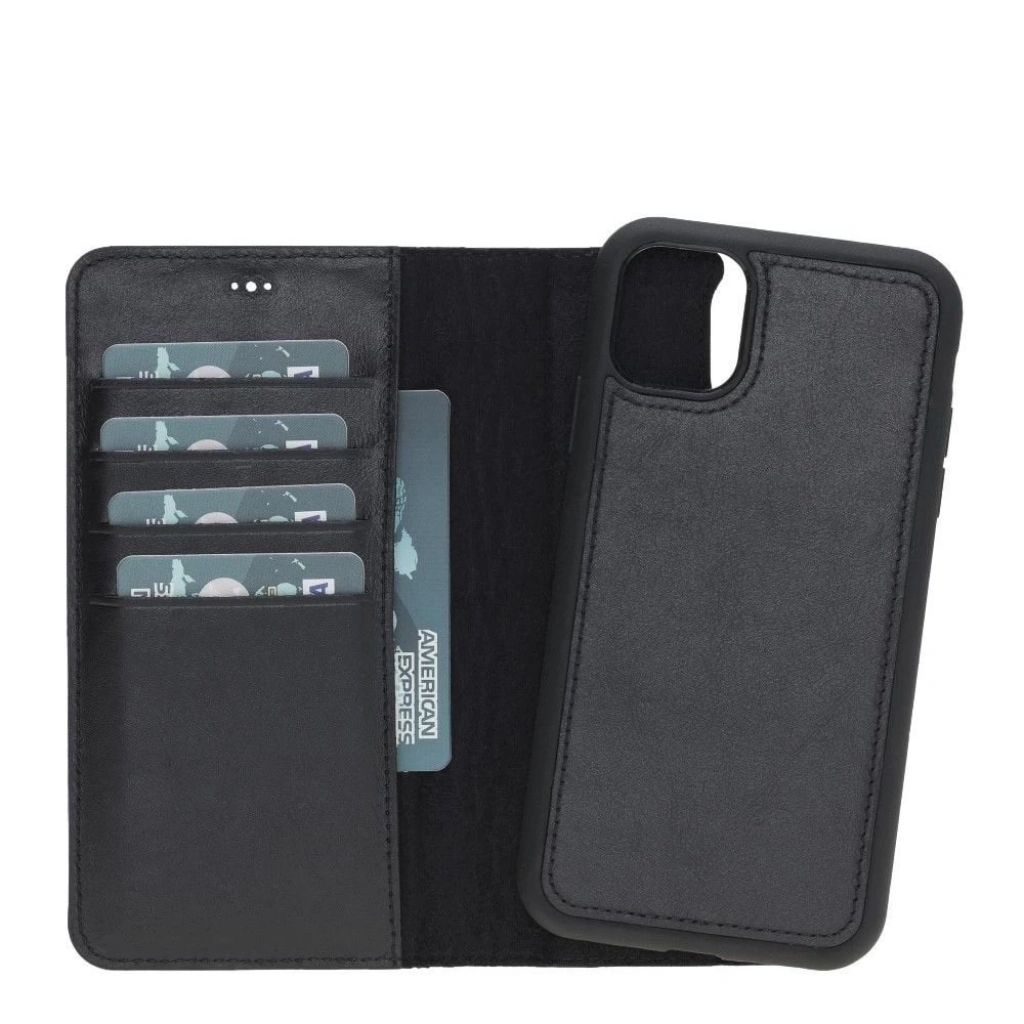 • Apple iPhone 11 Uyumlu Deri Cüzdanlı Kılıf Siyah