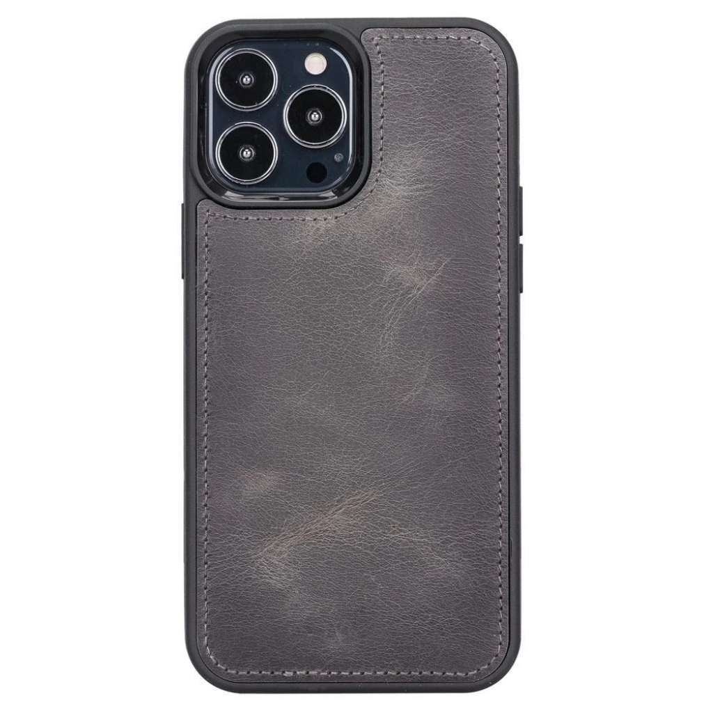 • Apple iPhone 13 Pro Max Uyumlu Deri Arka Kapak Antik Gri