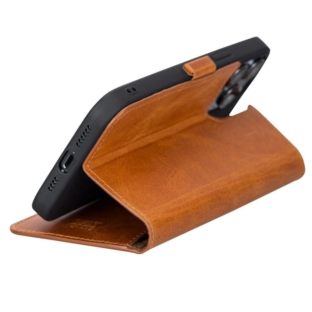 • Apple iPhone 13 Pro Max Uyumlu Deri Cüzdanlı Kılıf Karamel