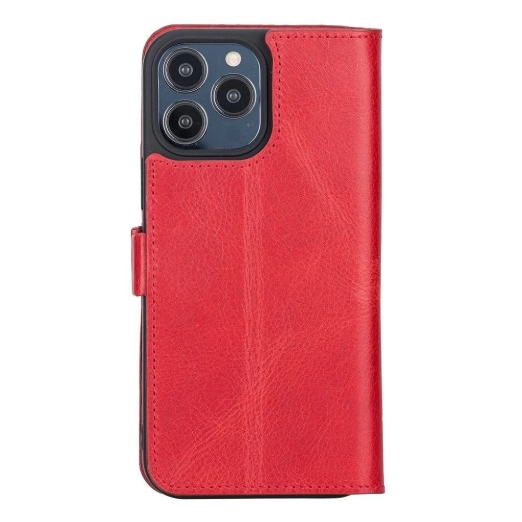 • Apple iPhone 13 Pro Max Uyumlu Deri Cüzdanlı Kılıf Nar Çiçeği