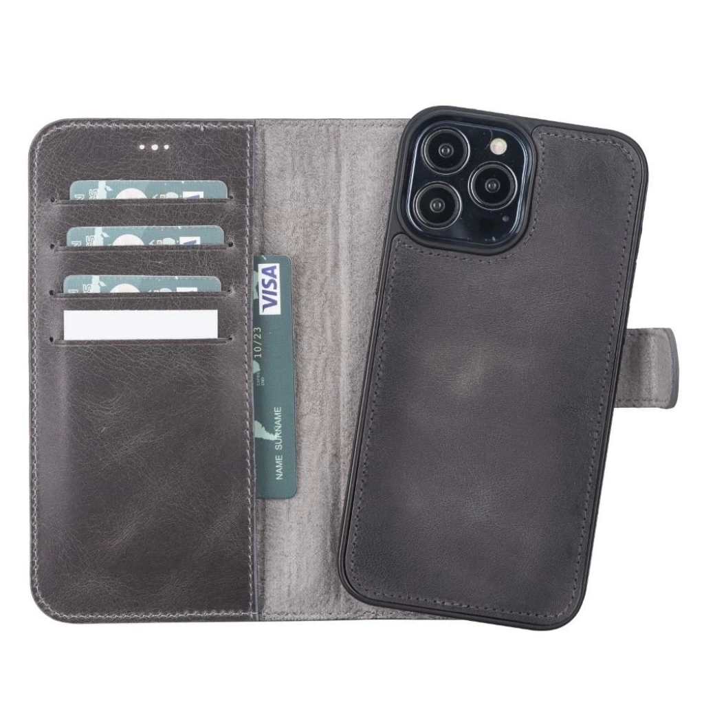 • Apple iPhone 13 Pro Max Uyumlu Deri Cüzdanlı Kılıf VS4EF Gri