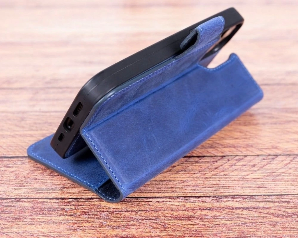 ÇOK SATAN Apple iPhone 13 Pro Uyumlu Deri Cüzdanlı Kılıf Lacivert