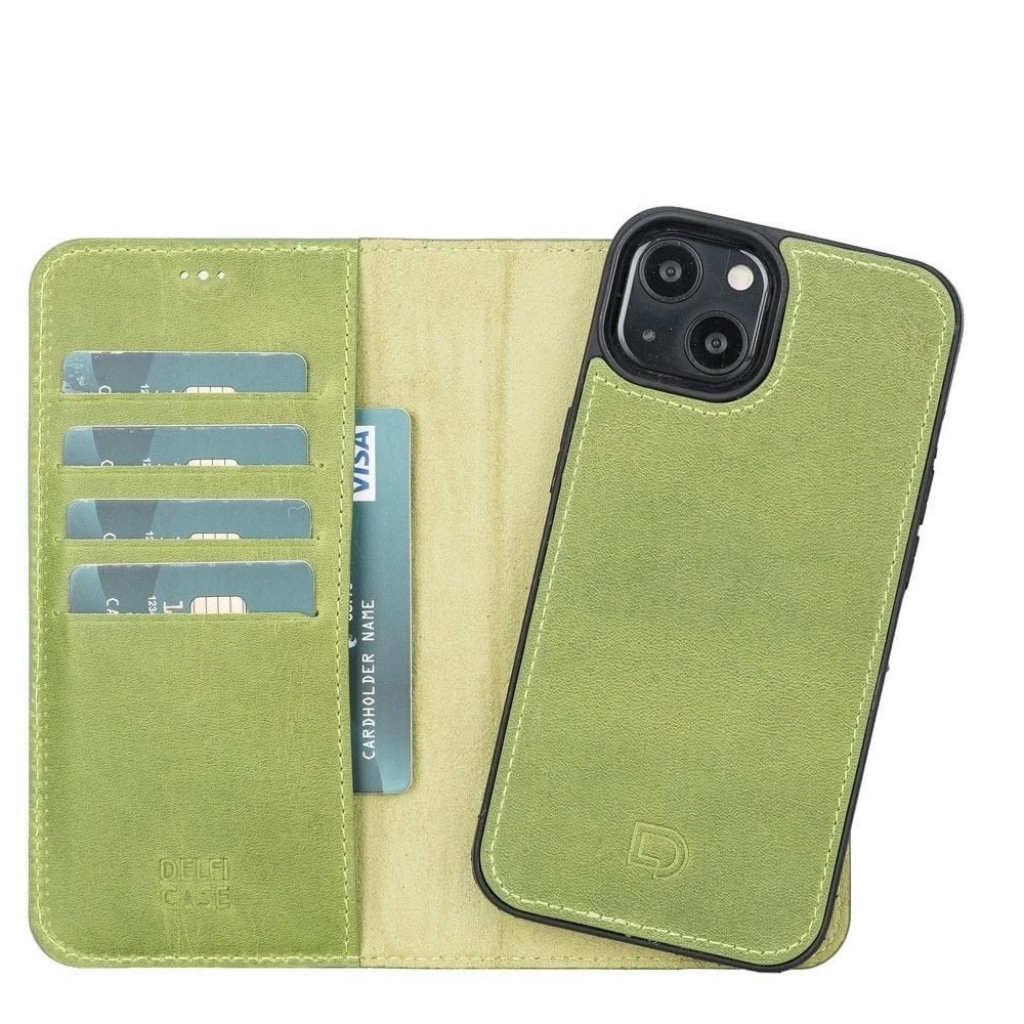 • Apple iPhone 13 Uyumlu Deri Cüzdanlı Kılıf Antik yeşil