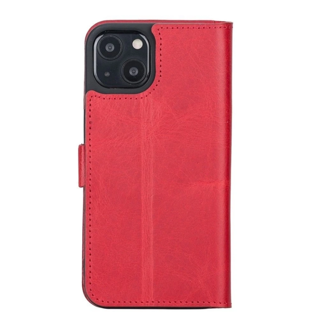 • Apple iPhone 13 Uyumlu Deri Cüzdanlı Kılıf Nar Çiçeği