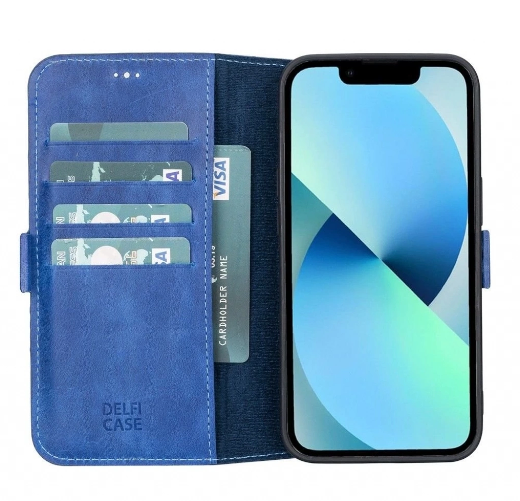 • Apple iPhone 13 Uyumlu Deri Cüzdanlı Kılıf Okyanus Mavi
