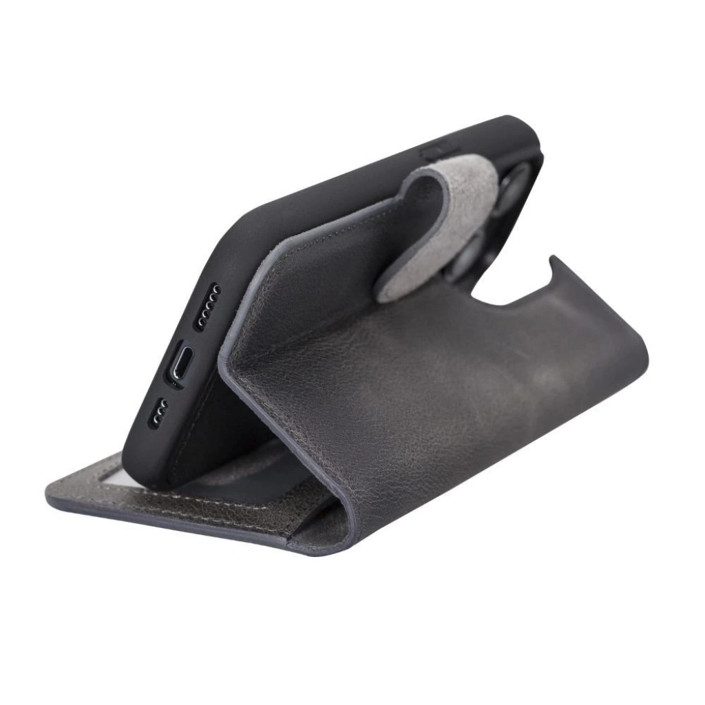 • Apple iPhone 14 Pro Uyumlu Deri Cüzdanlı Kılıf MWWN VS4EF Gri