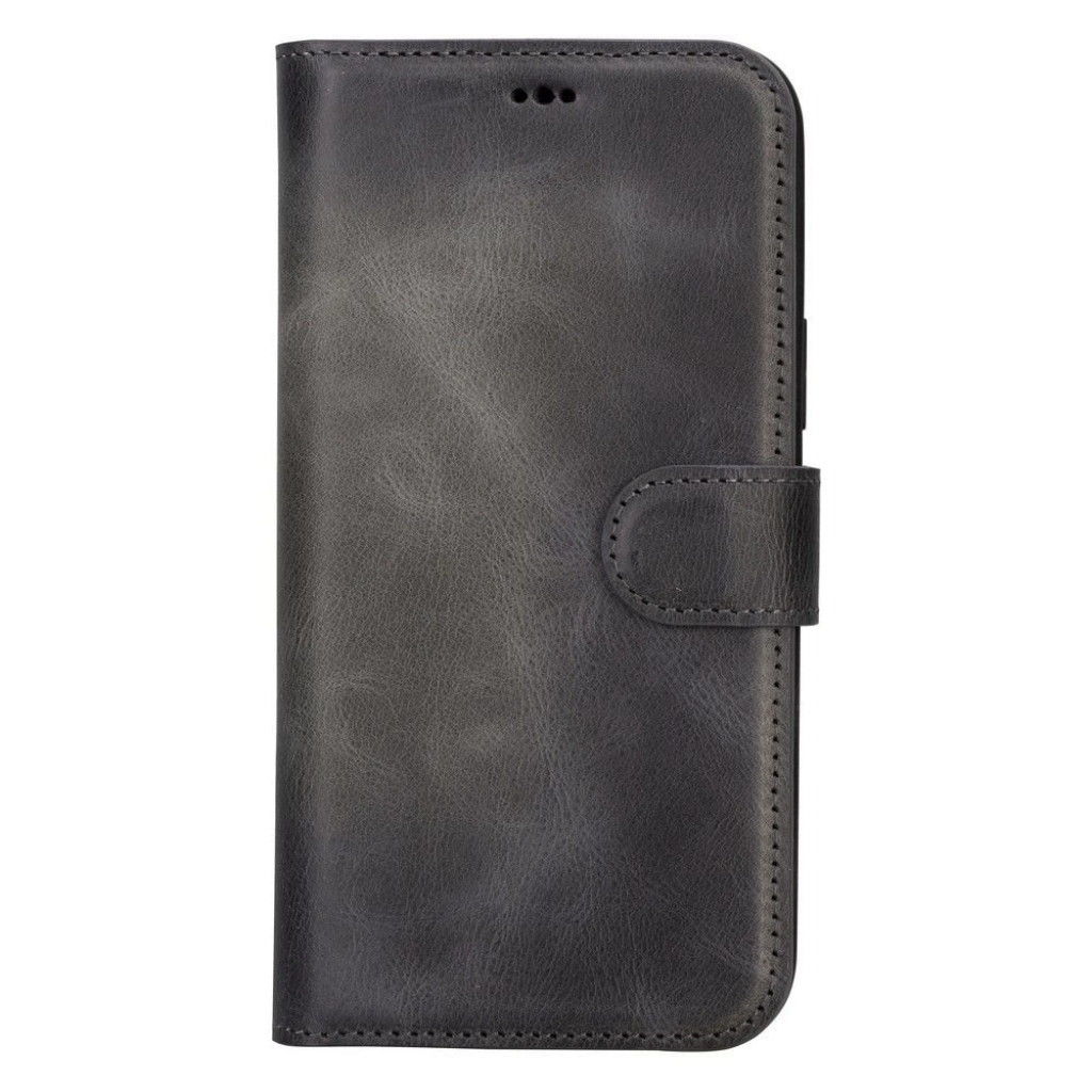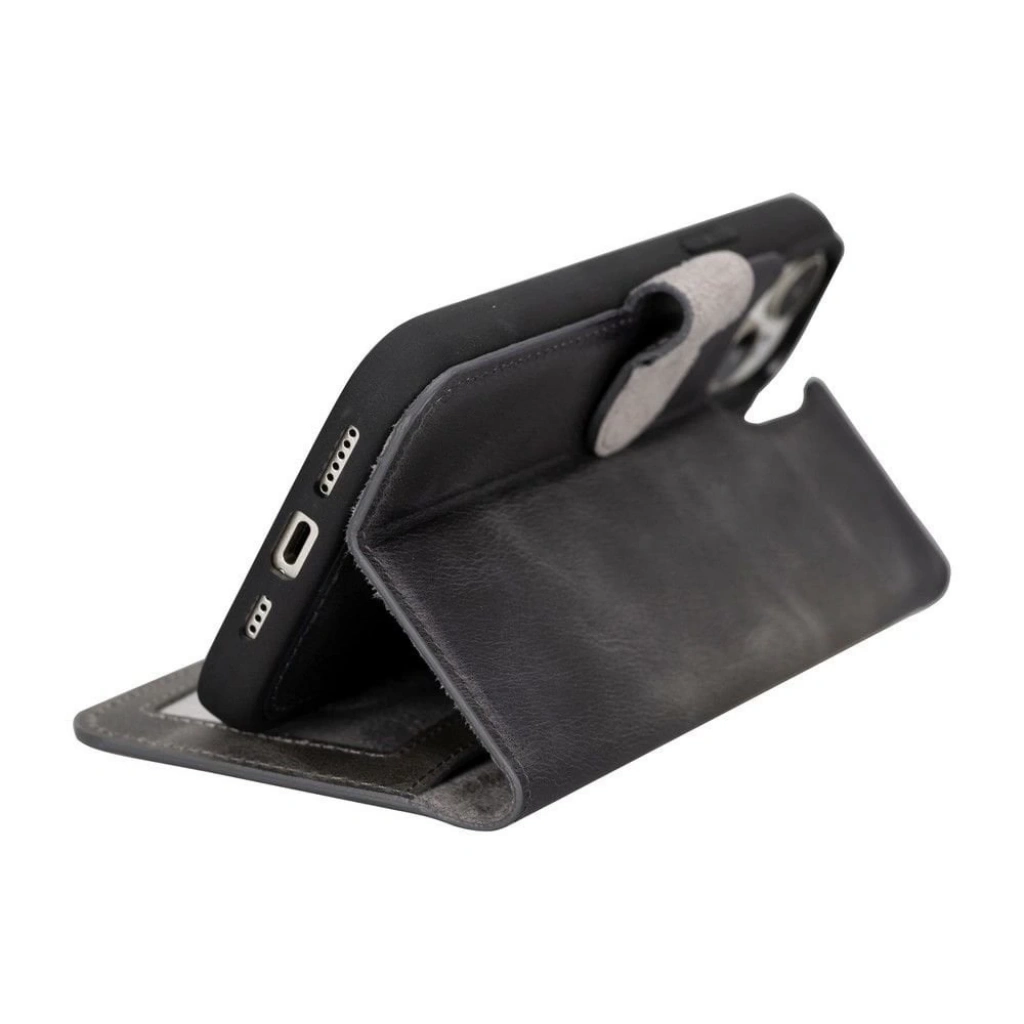 • Apple iPhone 15 Plus Uyumlu Deri Cüzdanlı Kılıf MWWN VS4EF Gri