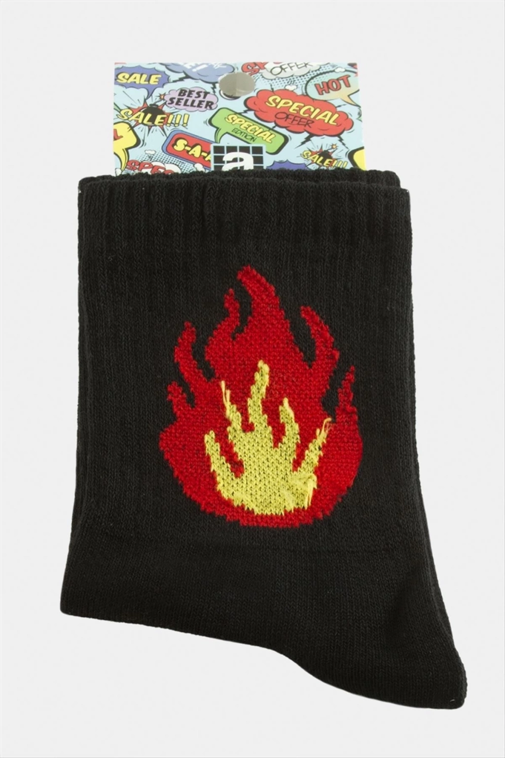 Çorap; Ürün malzemesi polyester ve üzeri desenlidir. Boyu 28 cm ve genişliği 8 cmdir. Ürün numarası 37-41 arasındadır.
