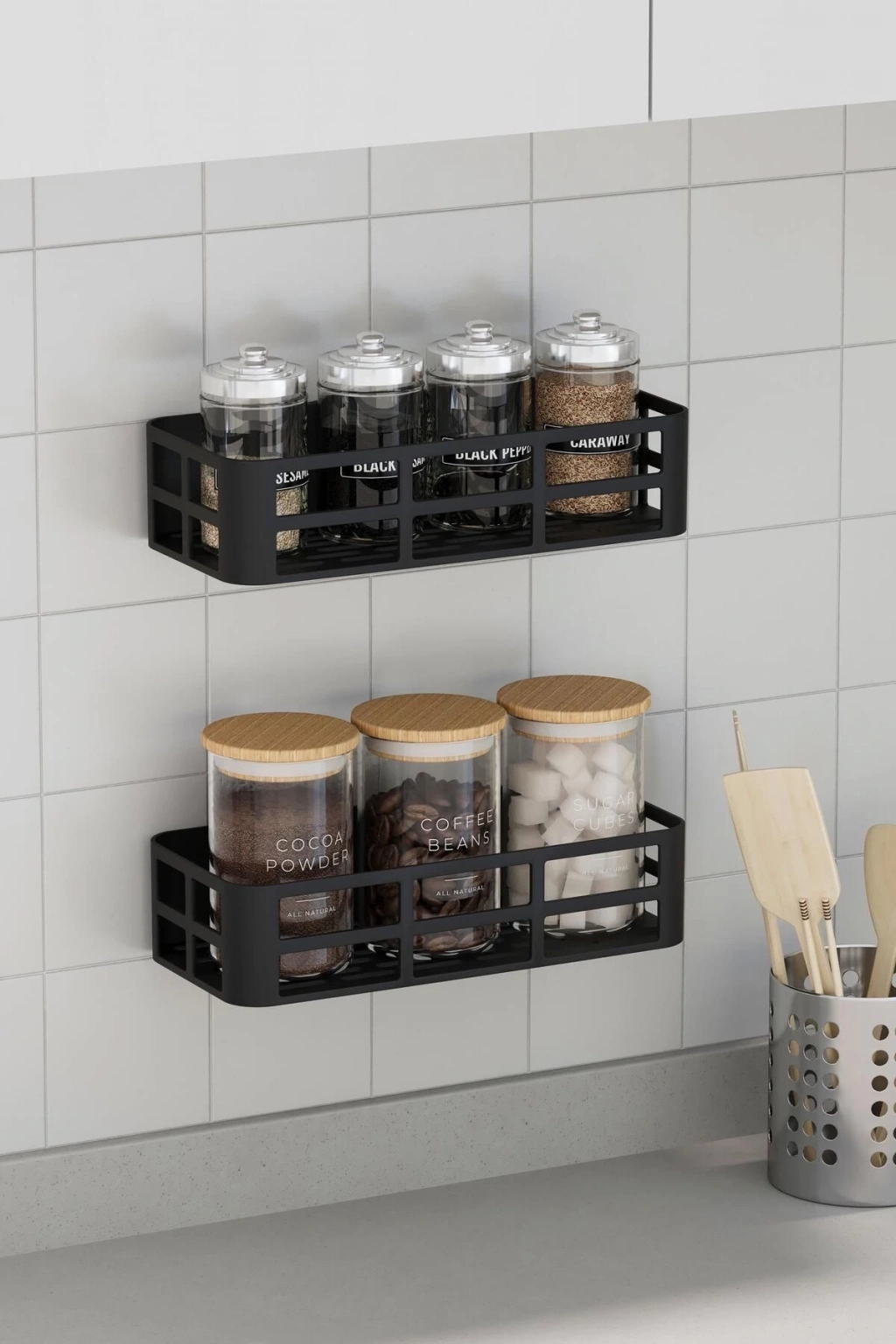 ÇOK SATAN Banyo Duş Rafı 2'li Yapışkanlı ve Deliksiz Duş Organizer Suya Dayanıklı Siyah Raf