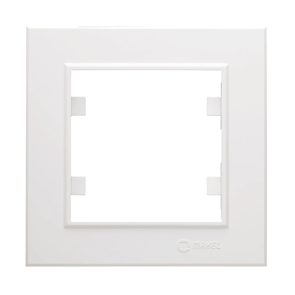 Makel Karea Beyaz Tekli Çerçeve, beyaz renkte ve tekli prizler için uygun bir çerçevedir.