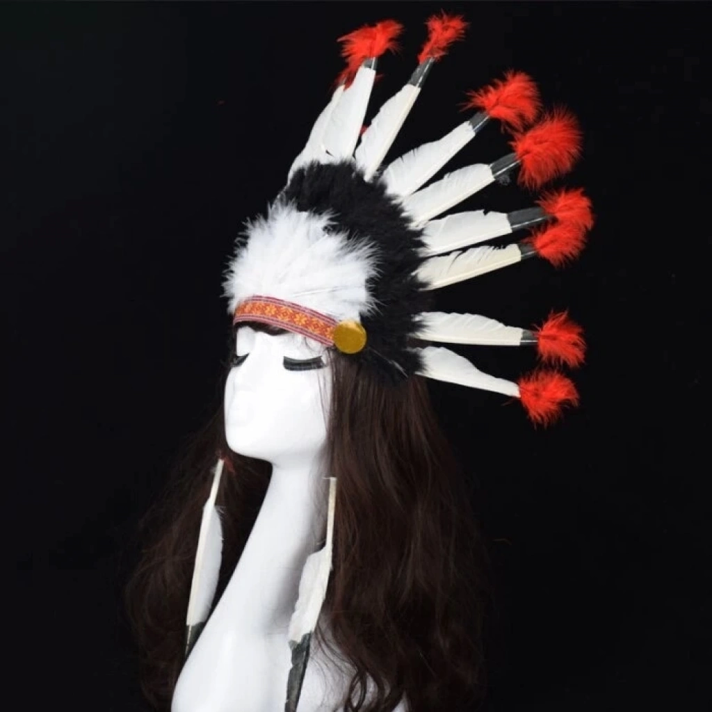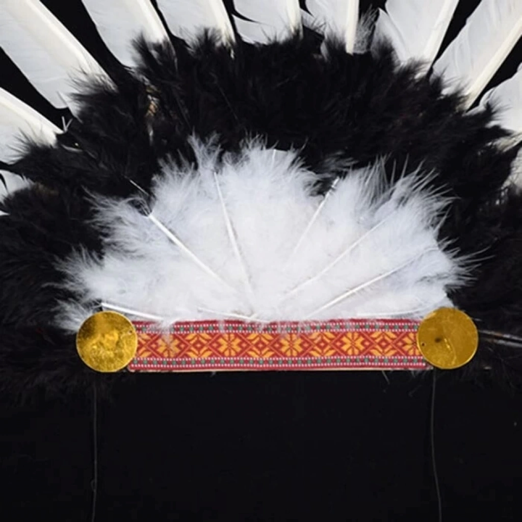 • Beyaz Tüylü Siyah Kırmızı Büyük Hintli Kızılderili Başlığı