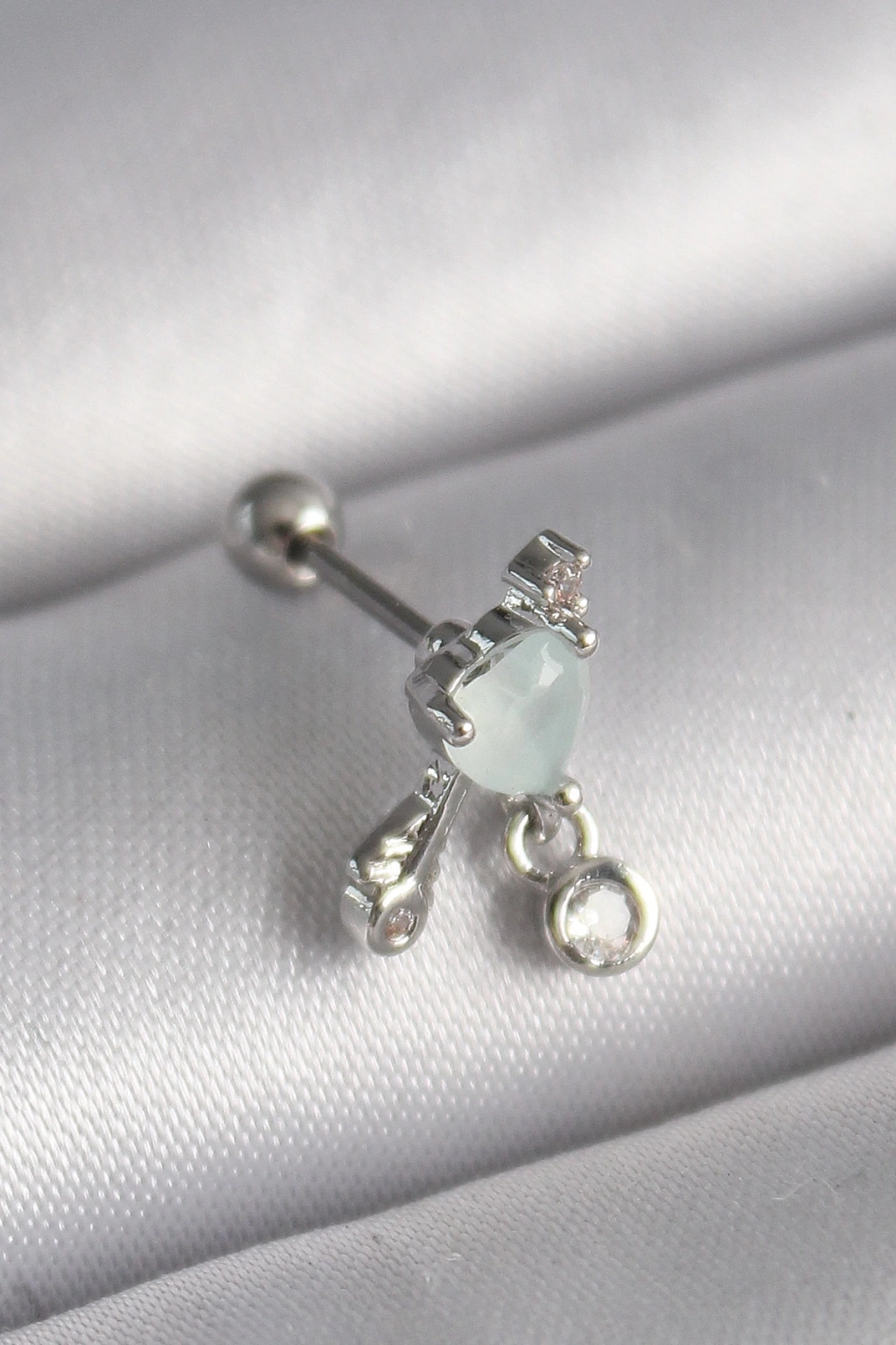 BFS 316L Çelik Gümüş Renk Beyaz Minelik Kalp Sallantı Zirkon Taş Detay Tragus Piercing