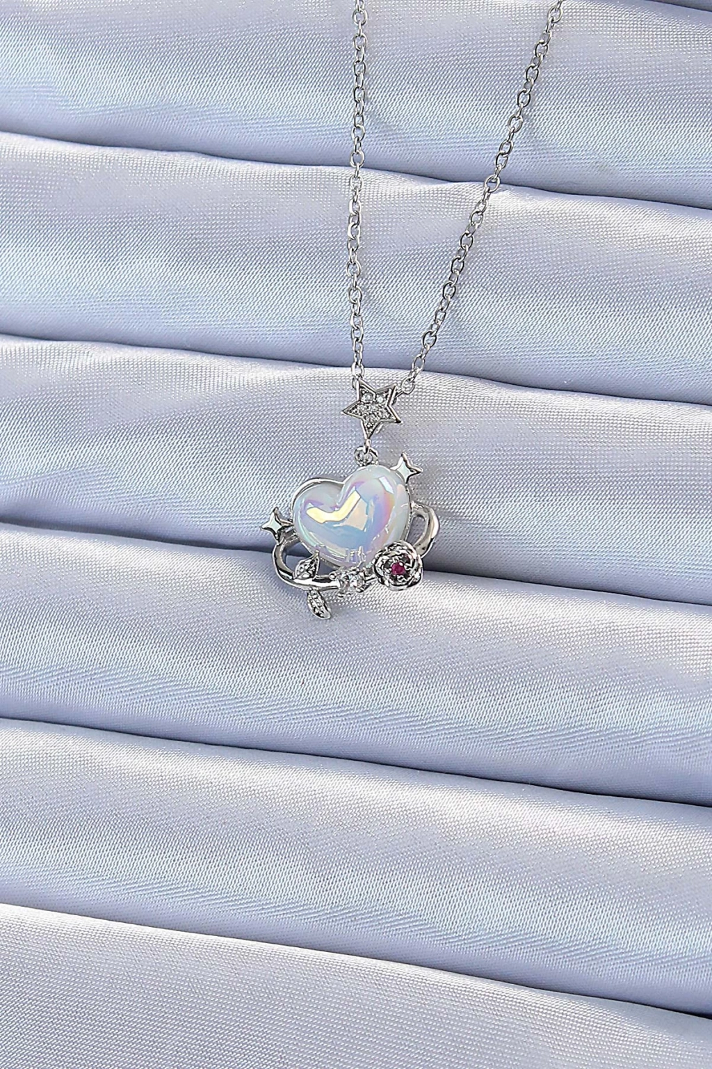 BFS 316L Çelik Zincir Gümüş Renk Zirkon Taşlı Gezegen Görünümlü Kalp Kolye