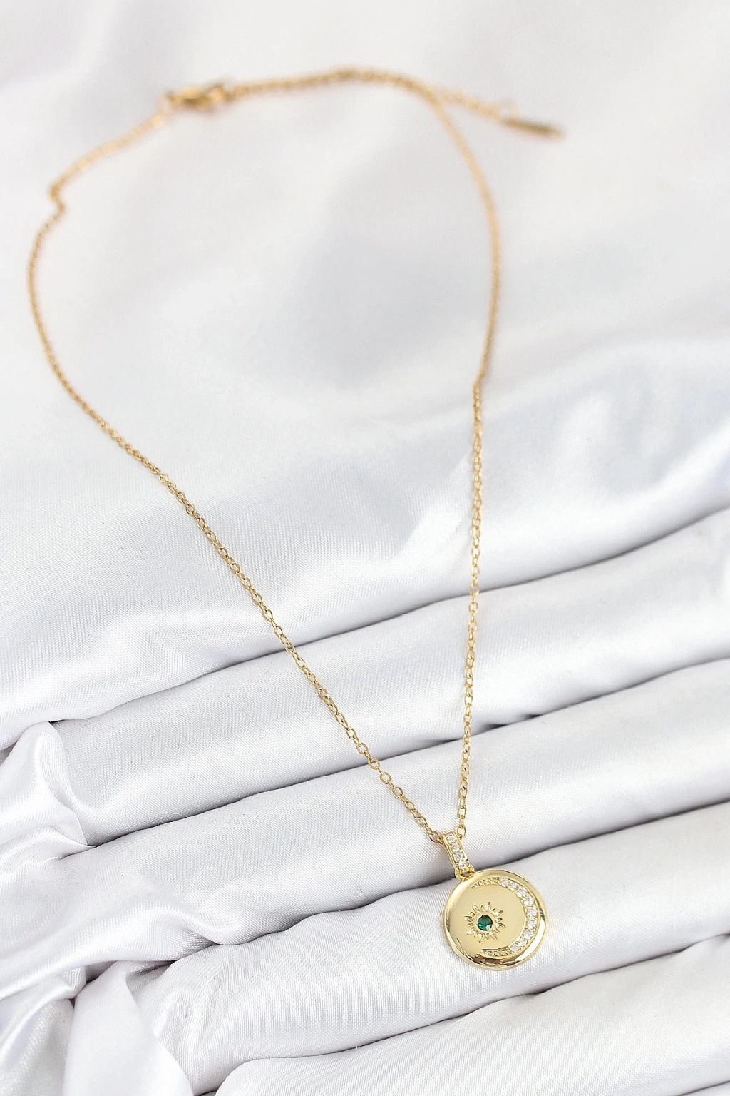 BFS 316L Çelik Zirkon Taşlı Ay Ve Güneş Model Gold Renk Kadın Kolye