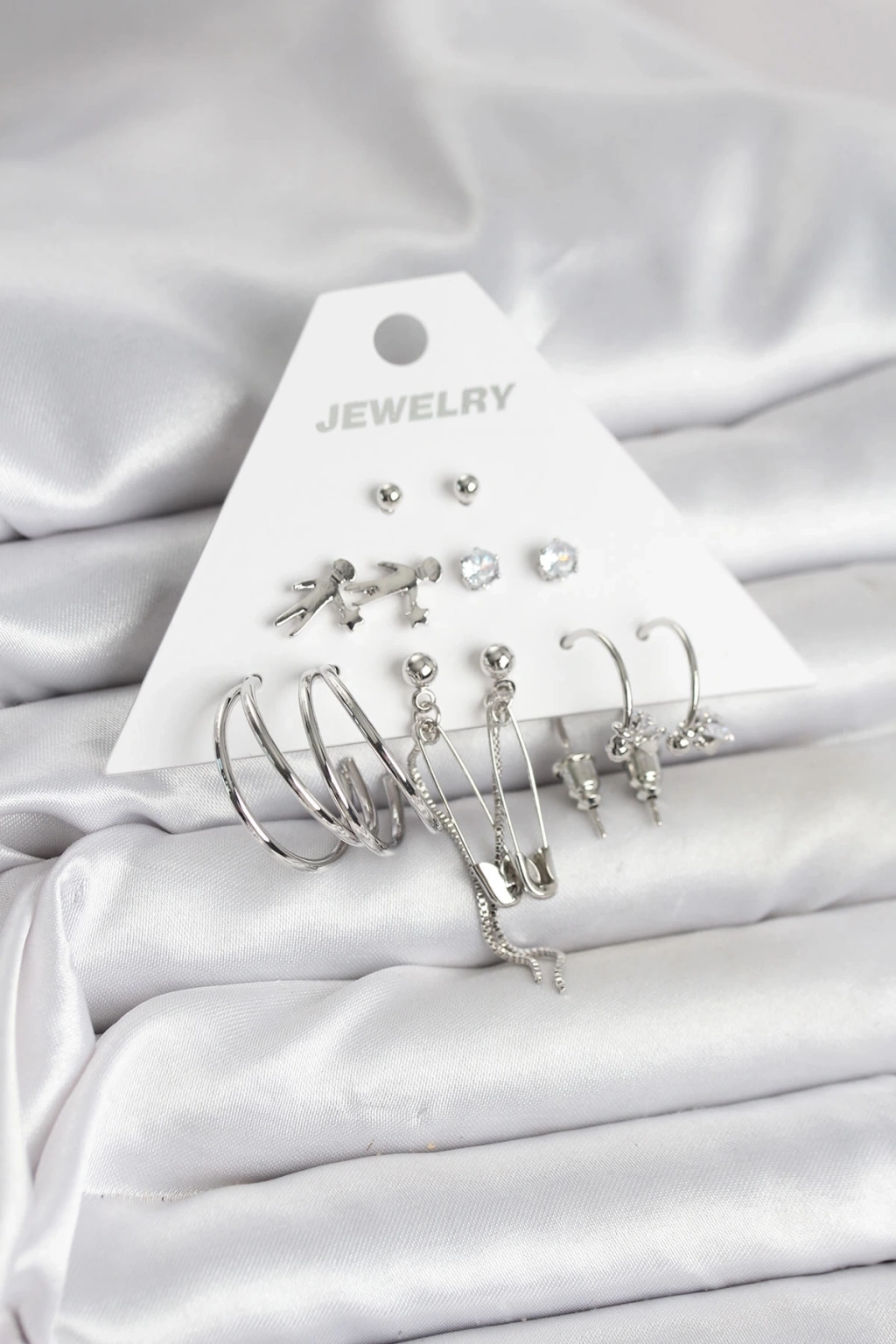 ÇOK SATAN BFS Pirinç Gümüş Renk 6'lı Kadın Küpe Seti