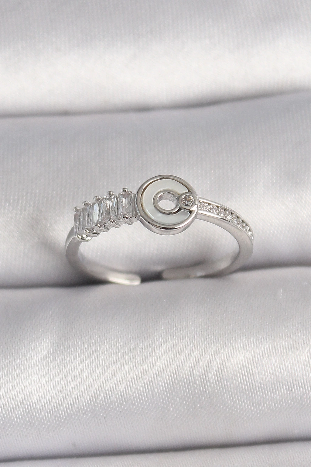 BFS Pirinç Gümüş Renk Zirkon Taşlı Ayarlanabilir Kadın Yüzük