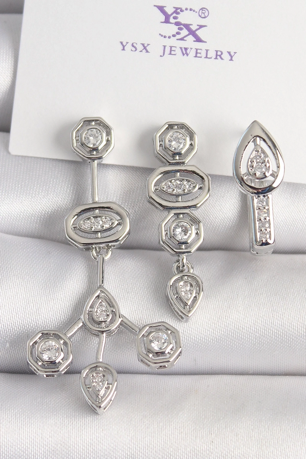 BFS Pirinç Gümüş Renk Zirkon Taşlı Geometrik Model 3'Lü Kadın Kombin Küpe