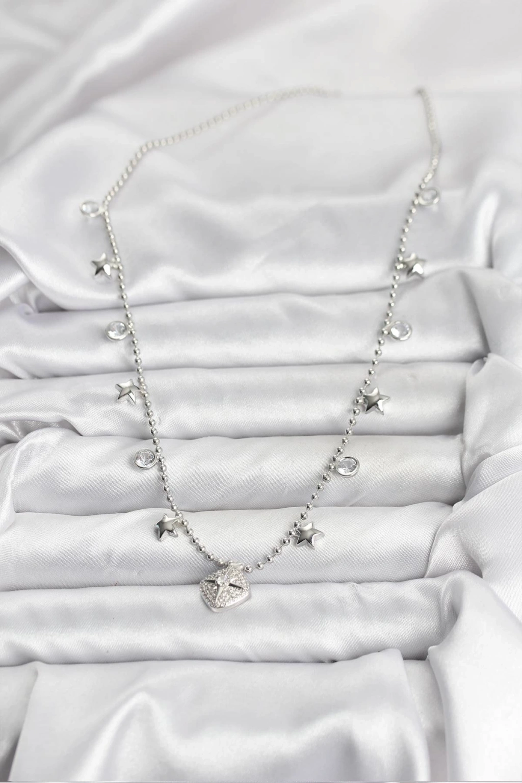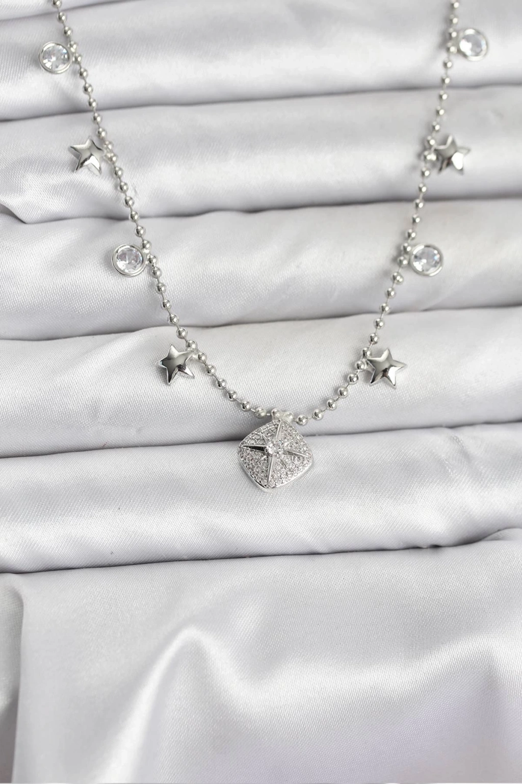ÇOK SATAN BFS Pirinç Gümüş Renk Zirkon Taşlı Kutup Yıldızı Model Kadın Kolye