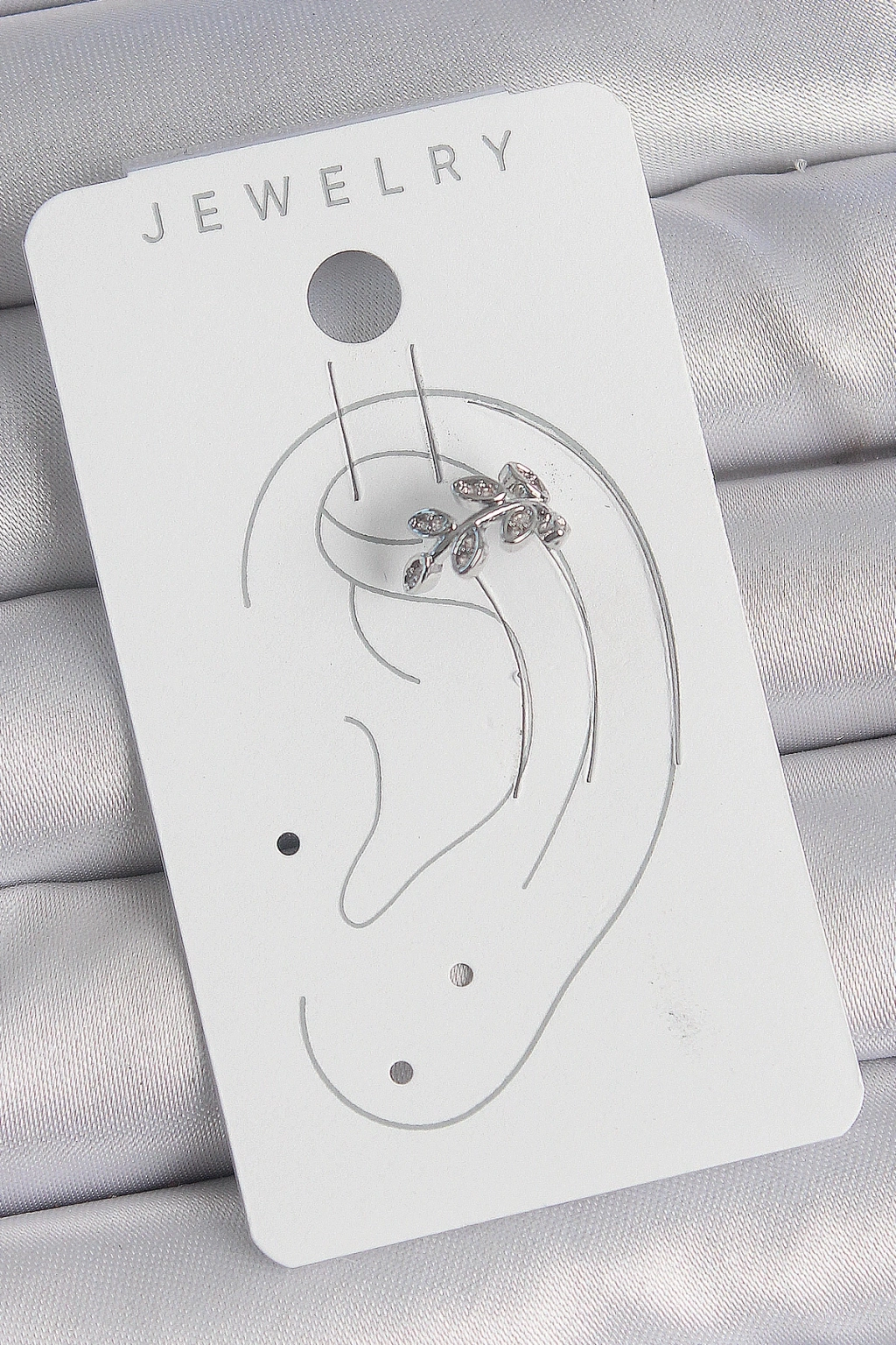 ÇOK SATAN BFS Pirinç Gümüş Renk Zirkon Taşlı Yaprak Model Kıkırdak Kadın Küpe