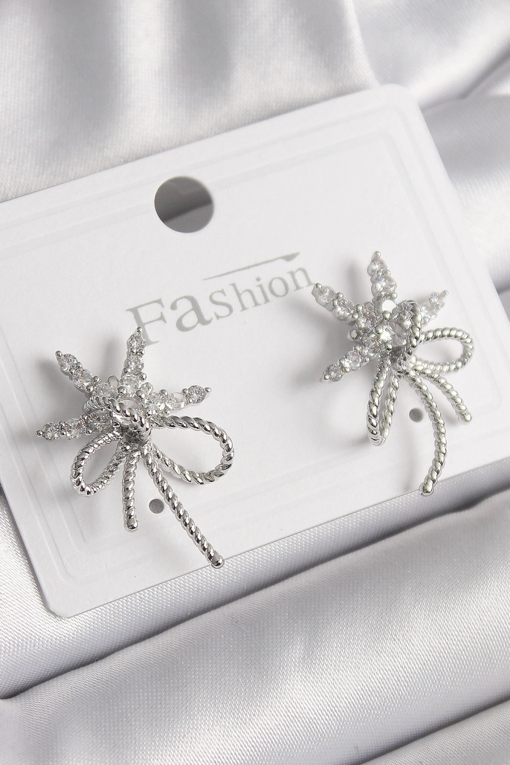 BFS Pirinç Gümüş Renk Zirkon Taşlı Yıldız Düğüm Model Kadın Küpe