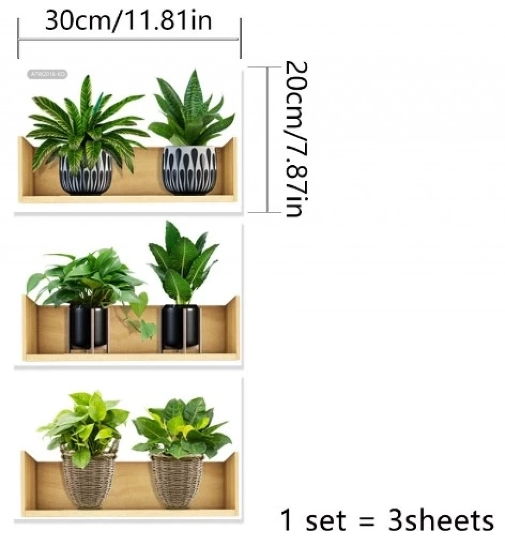 Paket içeriği: 3 sayfa (ruloya şeklinde) : Raflı Bitki Tasarımlı Yapışkanlı Sticker 20*30 cm
