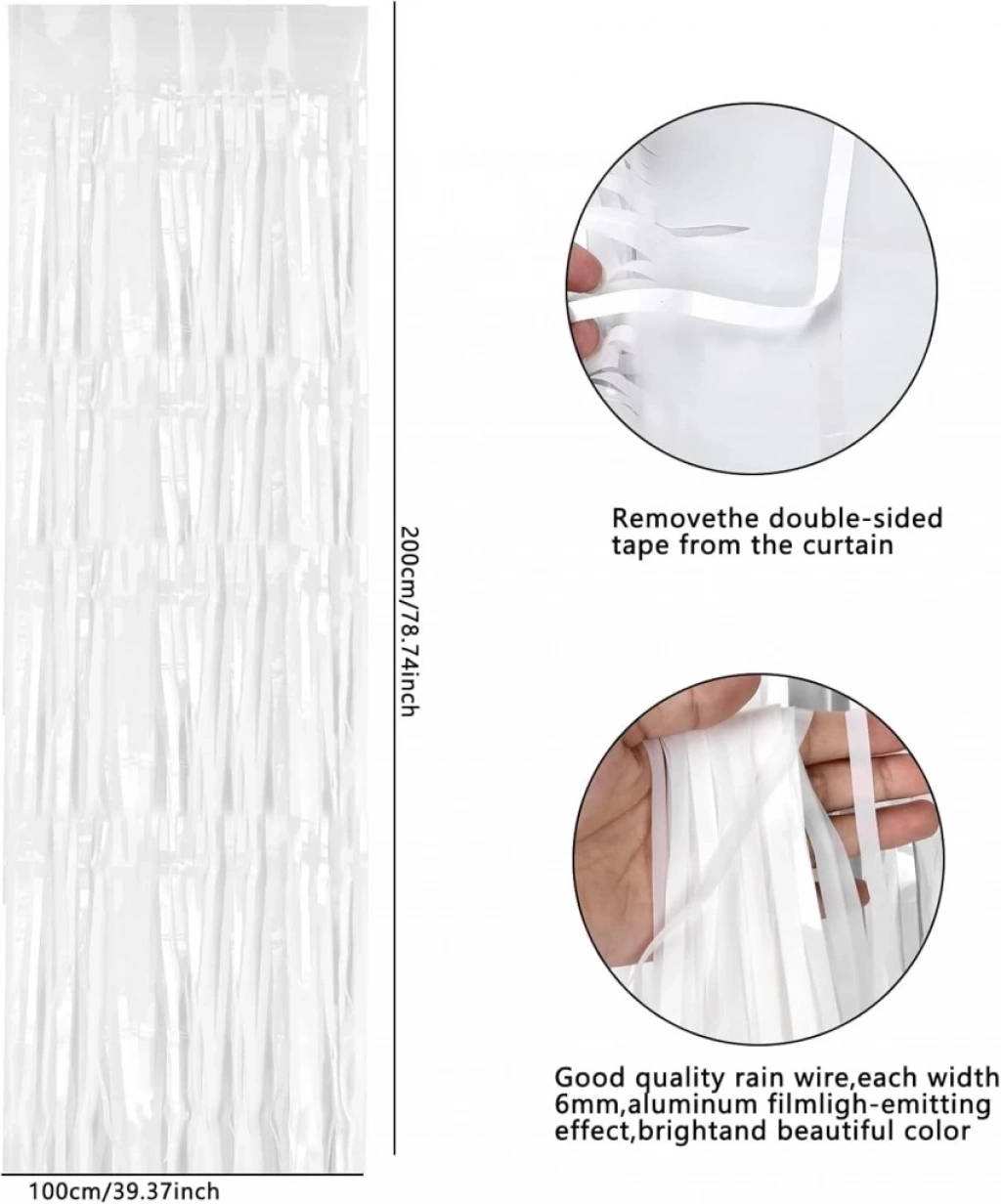 Parti organizasyonlarınızda ​sadece kapı değil duvar, perde gibi alanları da süsleyebileceğiniz Işıltılı Beyaz Püsküllü Perde.