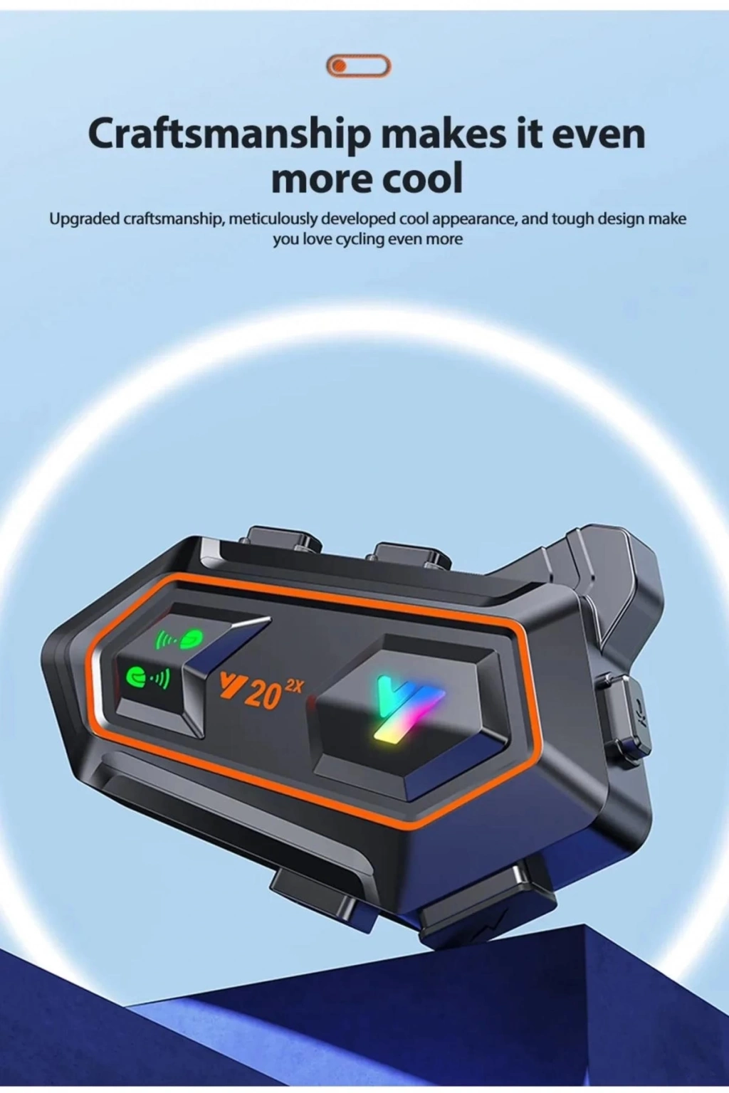 Y20 2x 1000M Telsiz Mesafeli 2 Kişi Bağlantılı Bluetooth Kask Kulaklık Fenerli İntercom