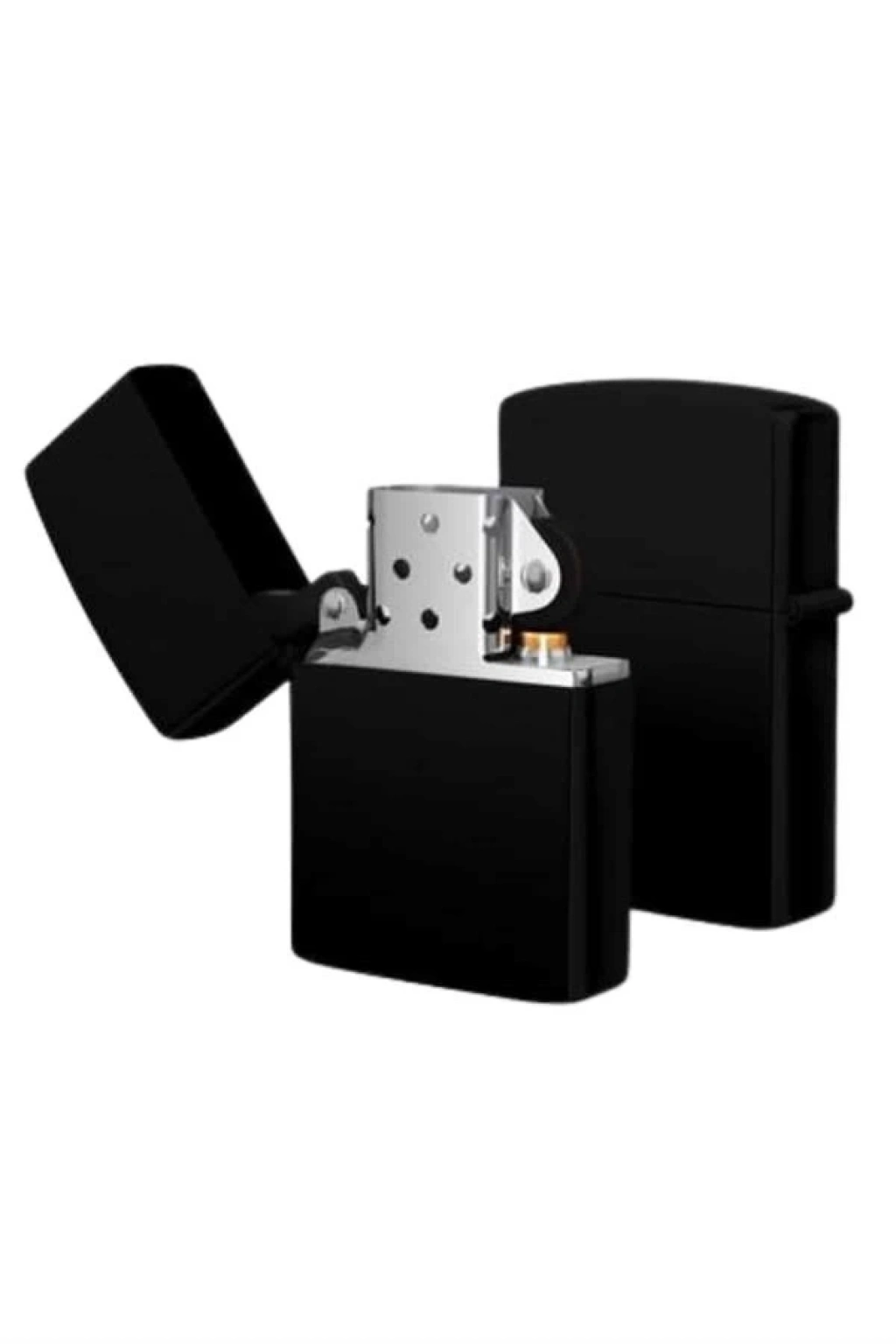 • Çakmak Parlak Siyah Zippo Benzinli Çakmak Cep Boy Doldurulabilir