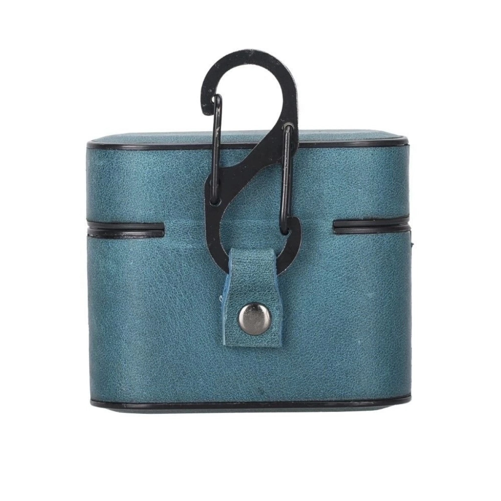 • Casquet Apple AirPods 3.nesil Uyumlu Deri Kılıf AA32 Mavi