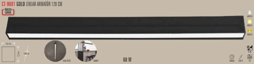 • CATA CT 9081 60W 120Cm Linear Armatür 3200K Gün Işığı