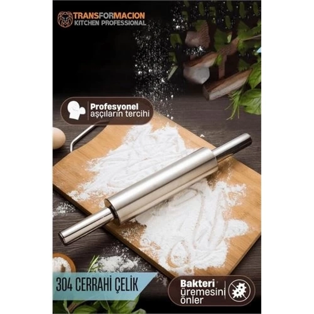 Çelik Merdane - Profesyonel Hamur Açma Merdanesi - 304 Paslanmaz Çelik Mutfak Merdanesi