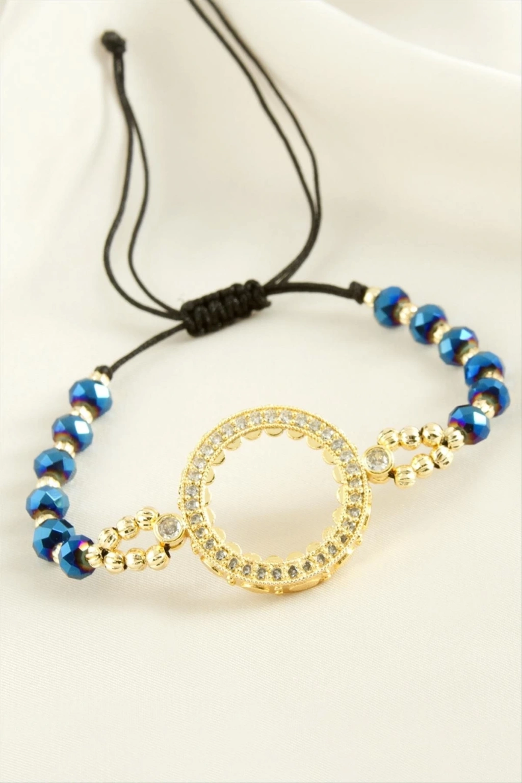 Bileklik : Ürün malzemesi kristal, makrome ip, taş ve metalden üretilmiştir. Ürün arkası asansörlüdür. Bileğe göre ayarlanabilir. Kartlıdır.