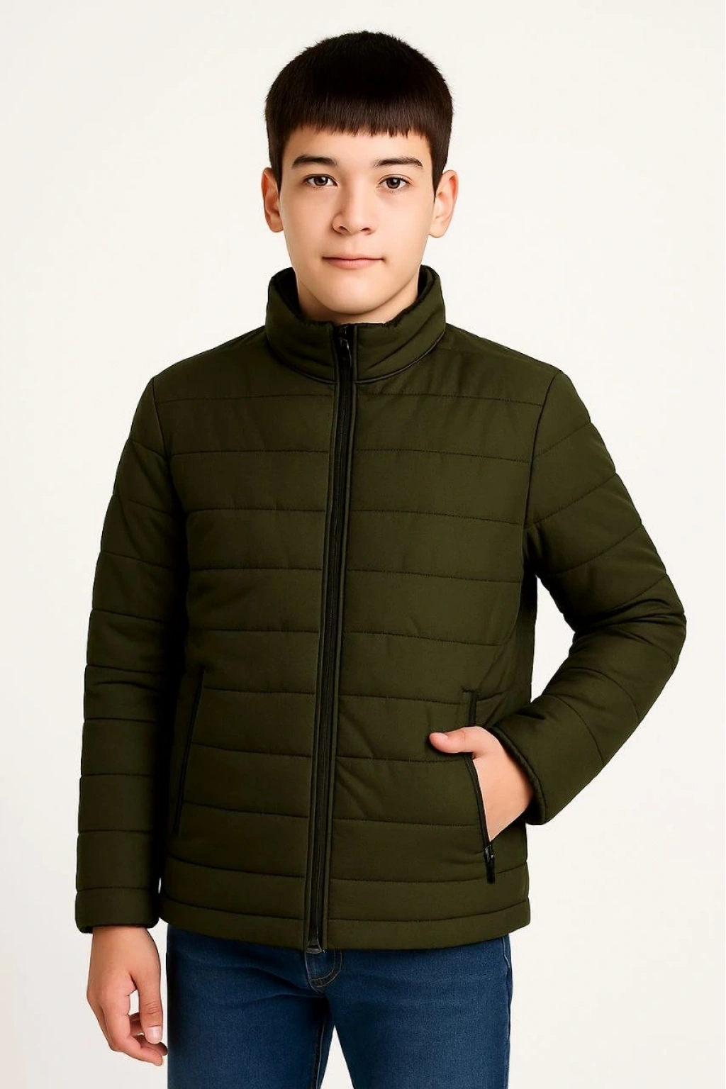 Şişme Mont Hafif ve Sıcak Tutucu Kışlık Fermuarlı Su İtici Rahat Günlük Mont Kapüşonuz Modern Tasarım- Haki