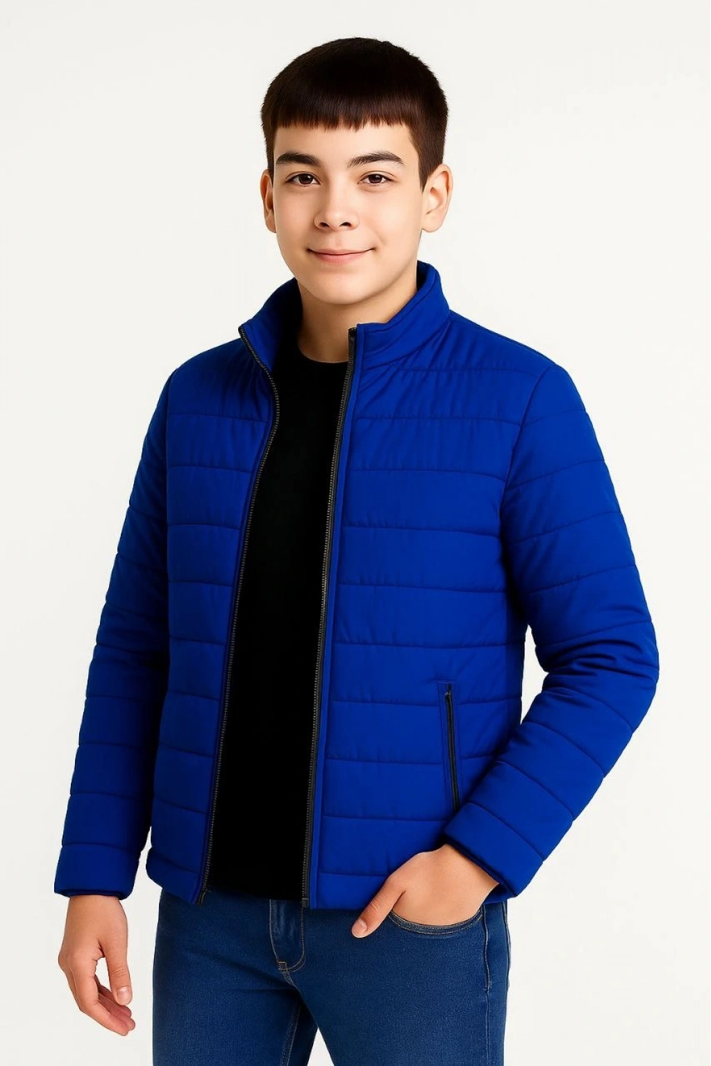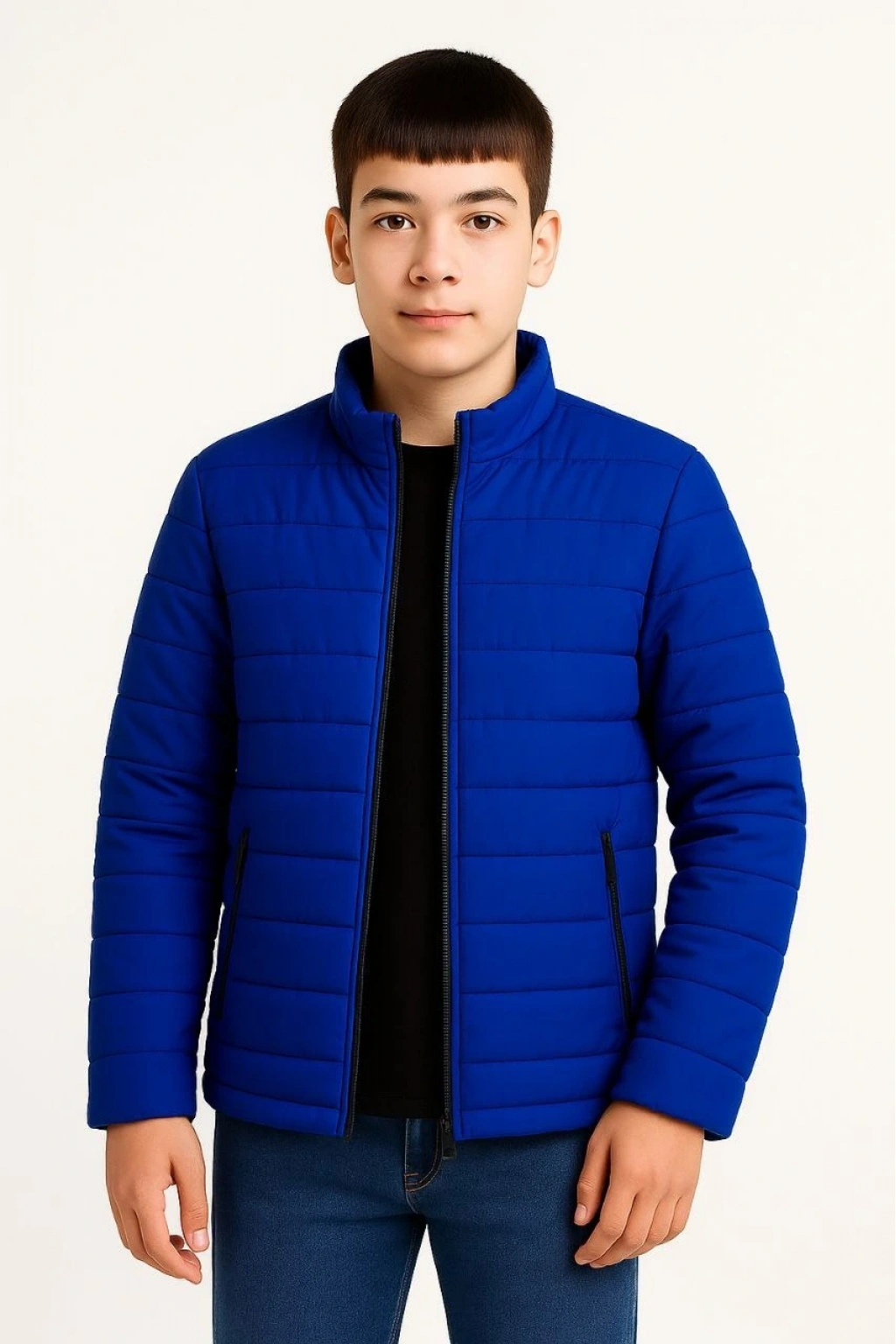 Şişme Mont Hafif ve Sıcak Tutucu Kışlık Fermuarlı Su İtici Rahat Günlük Mont Kapüşonuz Modern Tasarım - Saks Mavisi