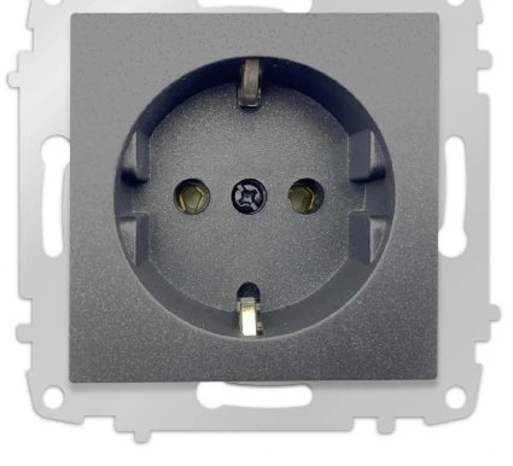 Füme Topraklı Priz Çerçevesiz - Priz ve Anahtar İçin Uyumlu Çerçeve