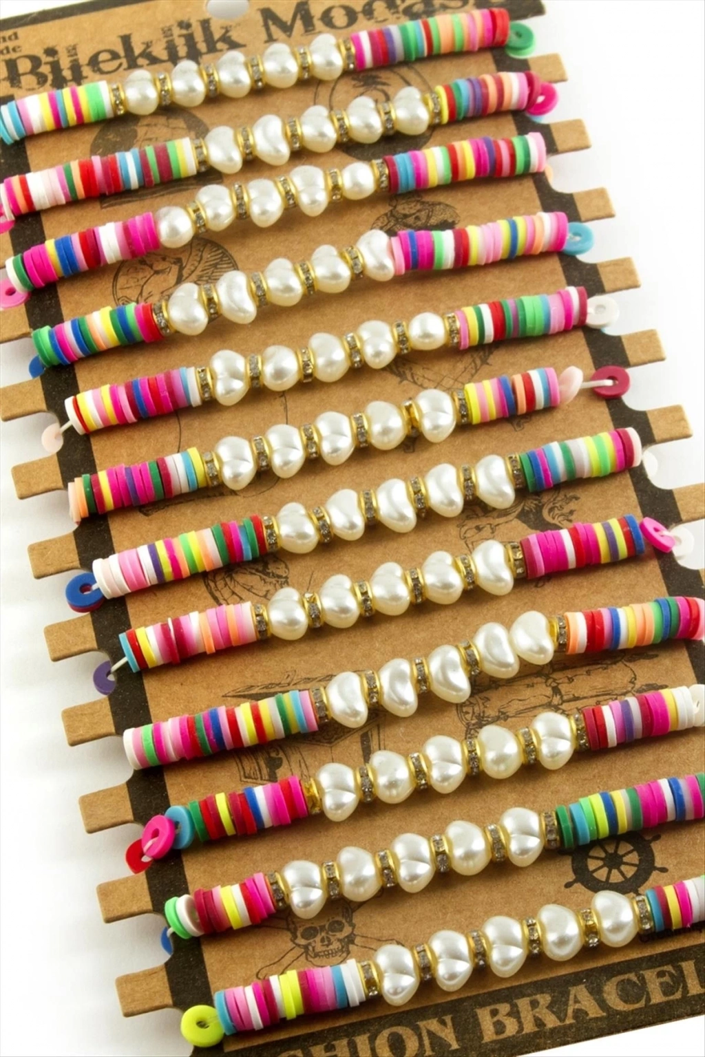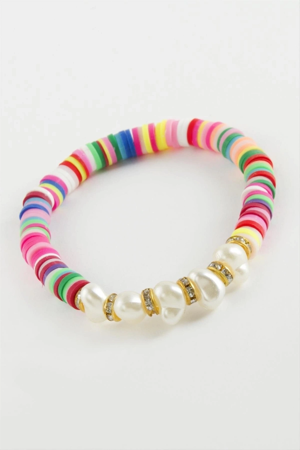 Bileklik; Ürün malzemesi inci, fimo boncuktur. Misina üzerine dizilmiştir. üretilmiştir. Renkleri asortilidir. Siparişlerinizde karışık olarak gönderilecektir.